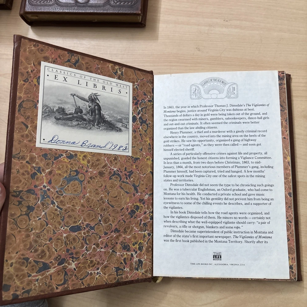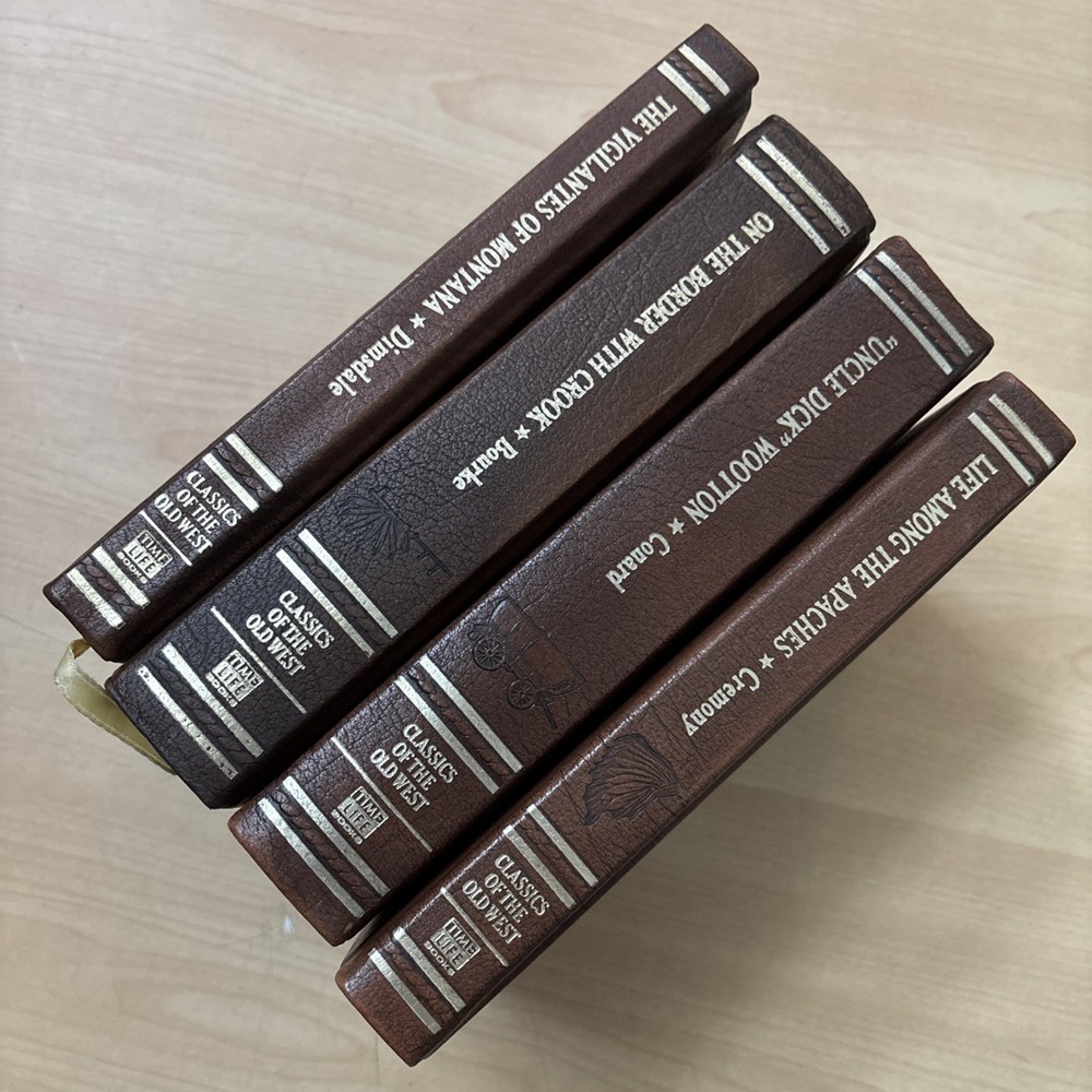 In great shape! All copies except Life Among the Apaches come with their paper insert, and all except On the Border with Crook come with their ex libris slip (all have been pasted in already. The ex libris slip in The Vigilantes of Montana is filled out, but the rest are blank. The gilding on the outer page edges has some minor scratches on each copy. All have light reading and shelf wear, but none have any major defects. Make sure to view all pictures before purchasing. Please don’t hesitate to contact with any questions or concerns and we’ll get back to you by the next business day. 14