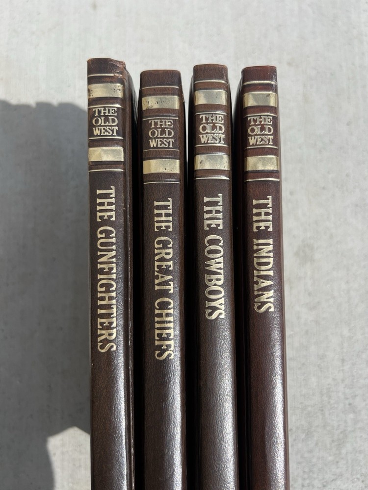 This listing is for a lot of 4 vintage hardcover books from The Old West Book Series by Time Life Books. The books included are: "The Pioneers," "The Soldiers," "The Gunfighters," and "The Indians." These nonfiction picture books provide a glimpse into American history, specifically focusing on the Western genre and historical events of the 1900s. With faux leather binding and illustrations, these books are a valuable addition to any collection of Western and history-themed literature.