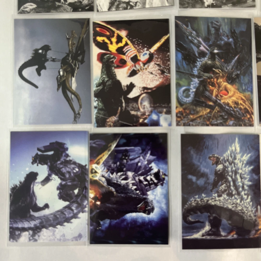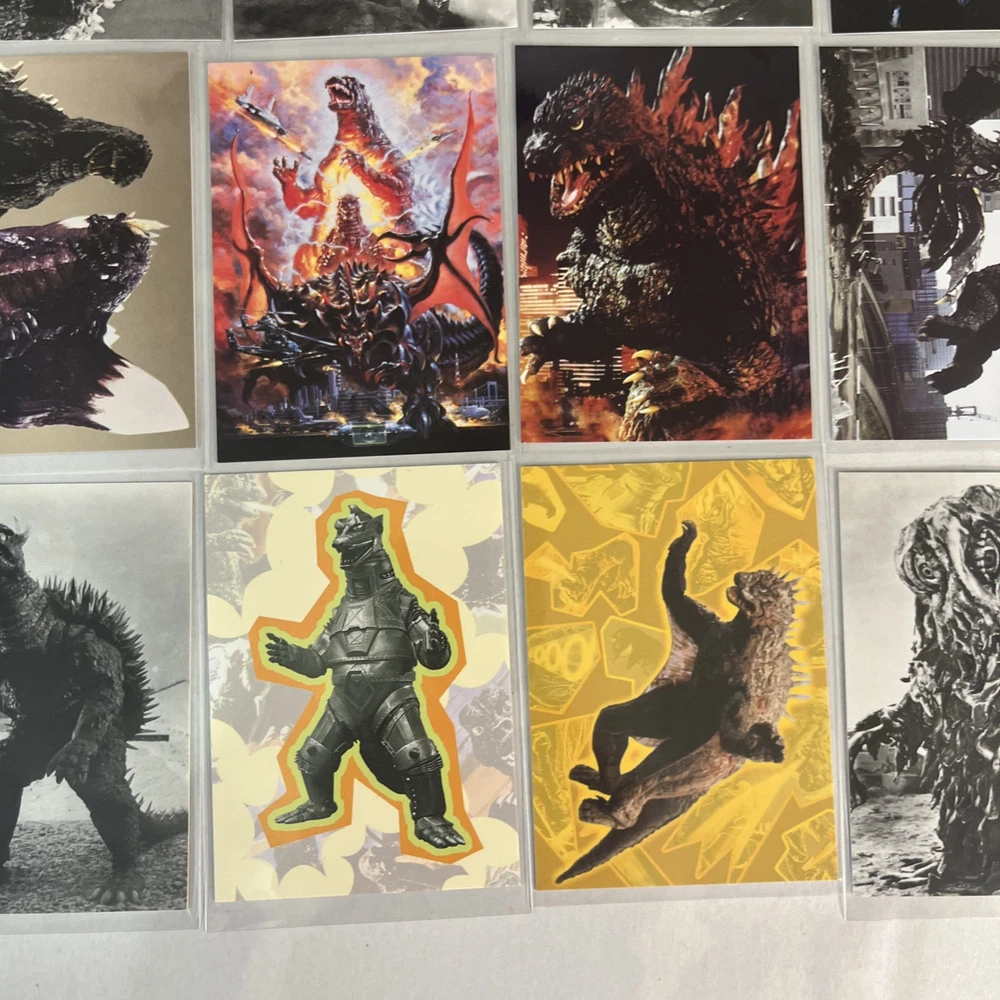 light to moderate play condition with some denting, scuffing, please see photos. Includes 1 Godzilla Is Back 2 Godzilla Filmography 3 Godzilla Filmography 4 Godzilla Filmography 5 Godzilla Filmography 6 Godzilla Filmography 7 Godzilla Filmography 8 Godzilla Filmography 9 Godzilla Filmography 10 Godzilla Filmography 13 Godzilla Filmography 14 Godzilla Filmography 15 Godzilla Filmography 16 Godzilla Filmography - Glossy Variant 17 Godzilla Filmography 18 Godzilla Filmography 19 Godzilla Filmography - Glossy Variant 20 Godzilla Filmography 21 Godzilla Filmography 22 Godzilla Filmography 23 Godzilla Filmography 25 Godzilla Filmography 26 Godzilla Filmography 27 Godzilla Filmography 28 Godzilla Filmography 29 Godzilla Filmography 30 Godzilla Filmography 31 Godzilla Friends & Foes 32 Godzilla Friends & Foes 33 Godzilla Friends & Foes 34 Godzilla Friends & Foes 35 Godzilla Friends & Foes 36 Godzilla Friends & Foes 37 Godzilla Friends & Foes 38 Godzilla Friends & Foes 39 Godzilla Origins Classified 40 Godzilla Origins Classified 41 Godzilla Origins Classified 42 Godzilla Origins Classified 48 Godzilla Rarities 49 Godzilla Rarities 50 Godzilla Rarities 51 Godzilla Rarities 52 Godzilla Rarities 53 Godzilla Memorabilia 54 Godzilla Memorabilia 55 Godzilla Memorabilia 56 Godzilla Memorabilia 57 Godzilla Memorabilia 58 Godzilla Memorabilia 59 Godzilla Memorabilia 60 Godzilla Memorabilia 61 Godzilla Memorabilia 62 Godzilla Memorabilia 63 Godzilla Memorabilia 64 Godzilla Memorabilia 65 Godzilla Lives 66 Godzilla Lives 67 Godzilla Lives 68 Godzilla Lives 69 Godzilla Lives 70 Godzilla Lives 71 Godzilla Lives 72 Checklist Dive into the world of giant monsters with the "Godzilla King of the Monsters" Collector Cards. Manufactured by Comic Images in 2006, this set encapsulates the thrilling adventure and fantasy that the franchise is known for. Featuring an array of beloved characters like Godzilla, Mothra, and Mechagodzilla, each card is a piece of the extensive Godzilla universe, printed on quality card stock that feels like a slice of movie history in your hands. The lot includes a diverse selection of cards from the base set, each telling its own story without the need for an autograph. Designed for fans aged 4 and above, these English-language cards are original prints from the United States, showcasing the intricate artwork and captivating details that have made the "Godzilla King of the Monsters" a classic addition to any collection. Whether you're a seasoned collector or just starting out, these cards are sure to be a roaring success.