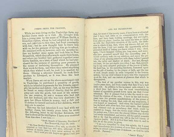 Biographical Sketches of Joseph Smith the Prophet, and His Progenitors for many Generations (ex-libris Harriet Richards Harwood, wife of Utah artist James T. Harwood) Author: Smith, Lucy [Mack] Title: Biographical Sketches of Joseph Smith the Prophet, and His Progenitors for many Generations (ex-libris Harriet Richards Harwood, wife of Utah artist James T. Harwood) Publication: Liverpool and London: Published for Orson Pratt by S. W. Richards, 1853 Edition: First edition Description: Leather bound. Sextodecimo [16 cm] Decoratively embossed leather boards. Rear board, half title, title, and final three leaves detached, but present. Small pieces of tape have been applied at the spine ends and corners. Half title and title, with the top halves adhered, and the pages totally detached but present. The next several pages are nearly detached. Notations, with much regarding the provenance of the book, circa 1901-1972, to preliminary leaves and rear pastedown. Front pastedown laminated with glue. Collated. All pages are present. This copy was first presented to Harriet R. Harwood in 1901. Her husband, James T. Harwood, is recognized as a major figure in art in the American west. He served as the head of the art department at the University of Utah from 1923-1931. Harriet R. Harwood was a painter as well. She was part of the first group of women artists from Utah to study abroad, traveling to Paris to study at the Académie Julian in 1888. Fair. This diminutive volume and the words contained therein have caused great controversy since it's original publication. Lucy Mack Smith (1776-1856) wrote the memoir based on her family history and the religious revelations of her son Joseph Smith (1805-1844). With Lucy Smith's permission, but without the approval of LDS Church President Brigham Young (1801-1877), Orson Pratt, Sr. (1811-1881) published Biographical Sketches in Liverpool, England in 1853. Initially, the book was praised in a November 1854 Deseret News article which stated that "...many facts which it contains, and never before published, are of great importance to the world, and the work constitutes a valuable acquisition to the libraries of the Saints." Pratt, who was one of the Twelve Apostles of the LDS Church, frequently battled with Brigham Young over their differing religious theories. Young "...was really angry at Pratt over doctrinal matters and, about half the time, while dressing him down in public and in private, simply threw in Biographical Sketches for good measure." (Anderson, Lavina Fielding, ed. Lucy's Book: A Critical Edition of Lucy Mack Smith's Family Memoir. Salt Lake City: Signature Books, 2001; p. 101). Further evidence of this doctrinal feud becoming personal between the two men can be found in the October 21, 1865 edition of the Millennial Star (pp. 657-658). The First Presidency of the LDS Church openly condemns Biographical Sketches and advises: "...it should be gathered up and destroyed...In Great Britain, diligence has been used in collecting and in disposing of this work, and we wish that same diligence continued there and also exercised here, at home, until not a copy is left. The inquiry may arise in the minds of some persons, 'Why do you want to destroy this book?' Because, we are acquainted with individual circumstances alluded to in it, and know many of the statements to be false..." The lengthy admonishment went on to state that, if any church members owned a copy: "...to dispose of it so it will never be read by any person again. If they do not, the responsibility of the evil results that may accrue from keeping it will rest upon them and not upon us...those who have been instructed respecting its character, and will still keep it on their tables, and have it in their houses... need rebuke, it is transmitting lies to posterity to take such a course, and we know that the curse of God will rest upon every one, after he comes to the knowledge of what is here said, who keeps these books for his children to learn and believe in lies. (Star pp. 657-658) Orson Pratt also did not escape public chastisement from the First Presidency: ..."brother Pratt had it printed, and published it, without saying a word to the First Presidency or the Twelve about what he was doing. This is the way the book came into being. It was smuggled, juggled and foisted into existence as a book..." (Star pp. 657-658) Subsequently, many of the books were destroyed. Individuals still owning copies were instructed to turn them over to their Bishops or to the church offices to be disposed of. People who voluntarily turned in their copies were paid with a credit towards their tithing or in other works of the church. For this reason, the Biographical Sketches of Joseph Smith the Prophet, and his Progenitors for Many Generations is a rare, controversial and historically important book. Flake/Draper 8080. Howes S637. Mormon Imprints 47. Mormon Fifty 41. Auerbach 1234. Scallawagiana Hundred 46. Graff 3860. Crawley 829. Seller ID: 58707 Subject: Utah & the Mormons Ken Sanders Rare Books Ken Sanders Rare Books is a full-service antiquarian bookshop in downtown Salt Lake City. We have a vast inventory of used and rare books, a handful of new books, and an ever-changing selection of art, ephemera, maps, photographs, and postcards. We specialize in Utah & the Mormons and Western Americana, with emphases on the Grand Canyon and the Colorado River, Yellowstone, and other national parks. The literary West is well-represented here, with deep selections of Edward Abbey, Wallace Stegner, B. Traven, and more. We offer rare and collectible books in many subjects, including Literature, Art, Photography, Children's and Illustrated Books, and Wordless Novels. Proprietor Ken Sanders has been buying, selling and collecting books since childhood. He co-owned and ran the legendary Cosmic Aeroplane Bookstore in the 1970s and founded Dream Garden Press , our in-house publishing company, in 1980. Terms & Guarantee All orde