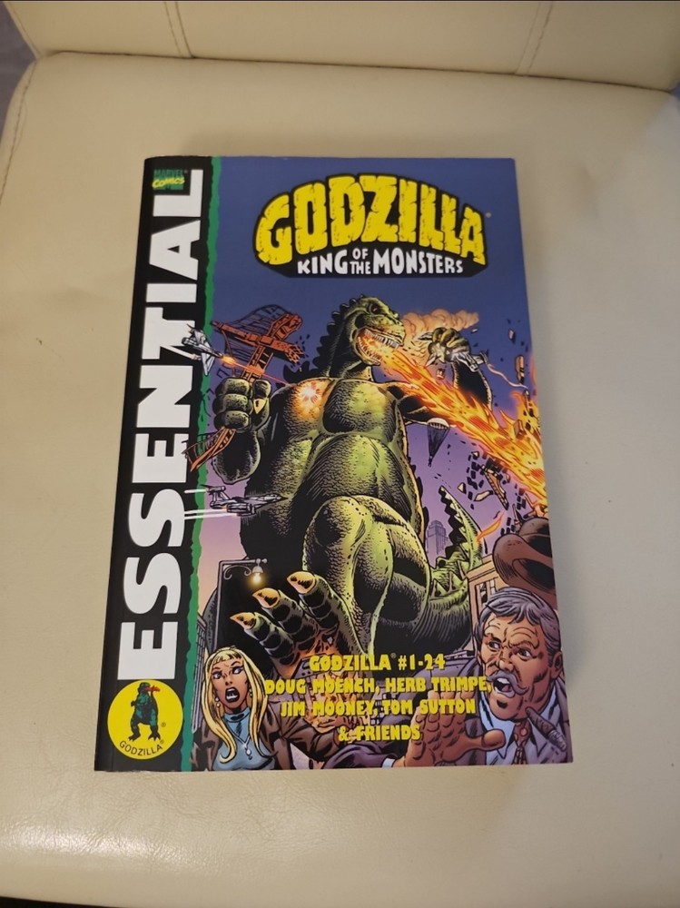 The product is a pre-owned trade paperback collection of Marvel Comics Godzilla #1-24 Essentials. This comic series features the iconic character Godzilla and falls under the monster genre. Published by Marvel Comics, this US Comics tradition offers a comprehensive look at the King of the Monsters. The collection includes a total of 24 issues in this essential trade paperback set.