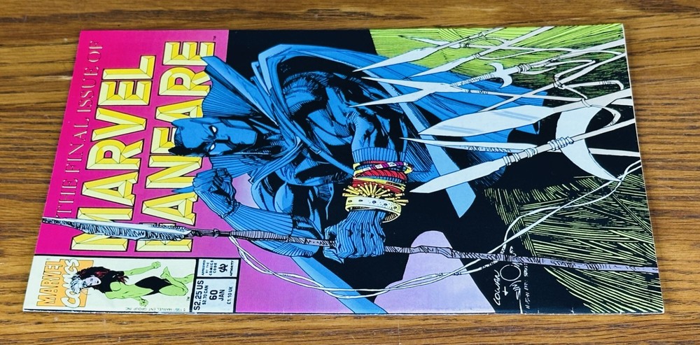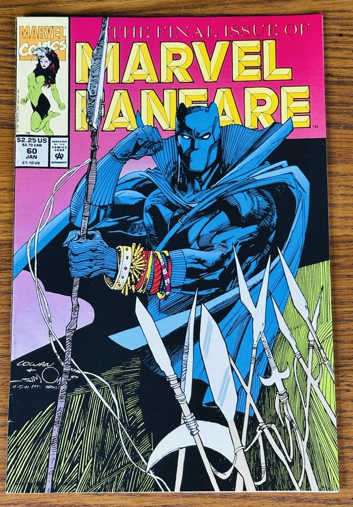 This is MARVEL FANFARE #60 , published in 1991. This is the FINAL ISSUE of Volume 1 and features a Black Panther Story. This issue is in Fine condition. There are spine creases and a semi-circular crease on the top left corner that is present throughout the book. There is a crease on the bottom left front cover corner. The spine is strong and intact and there is no writing, rips, or stains inside. Comes from a smoke-free home. All comics are shipped bagged, boarded, and protected well in a strong outer covering. Will combine shipping, which is always FREE! Visit the Prime Time Treasure Ebay Store for more comic books and amazing treasures, updated daily!