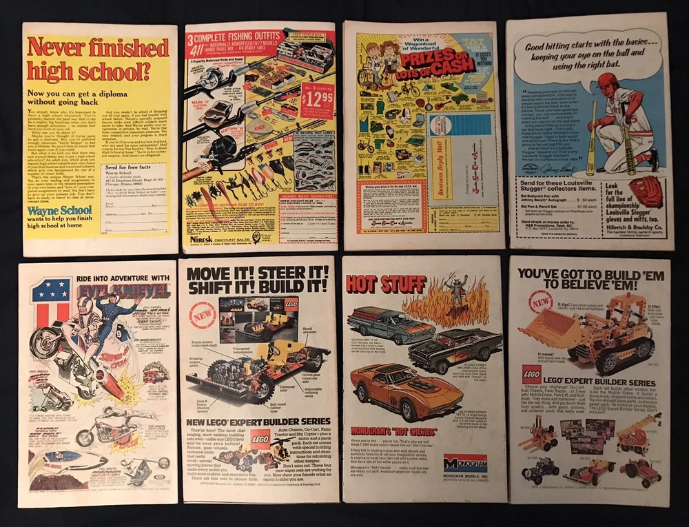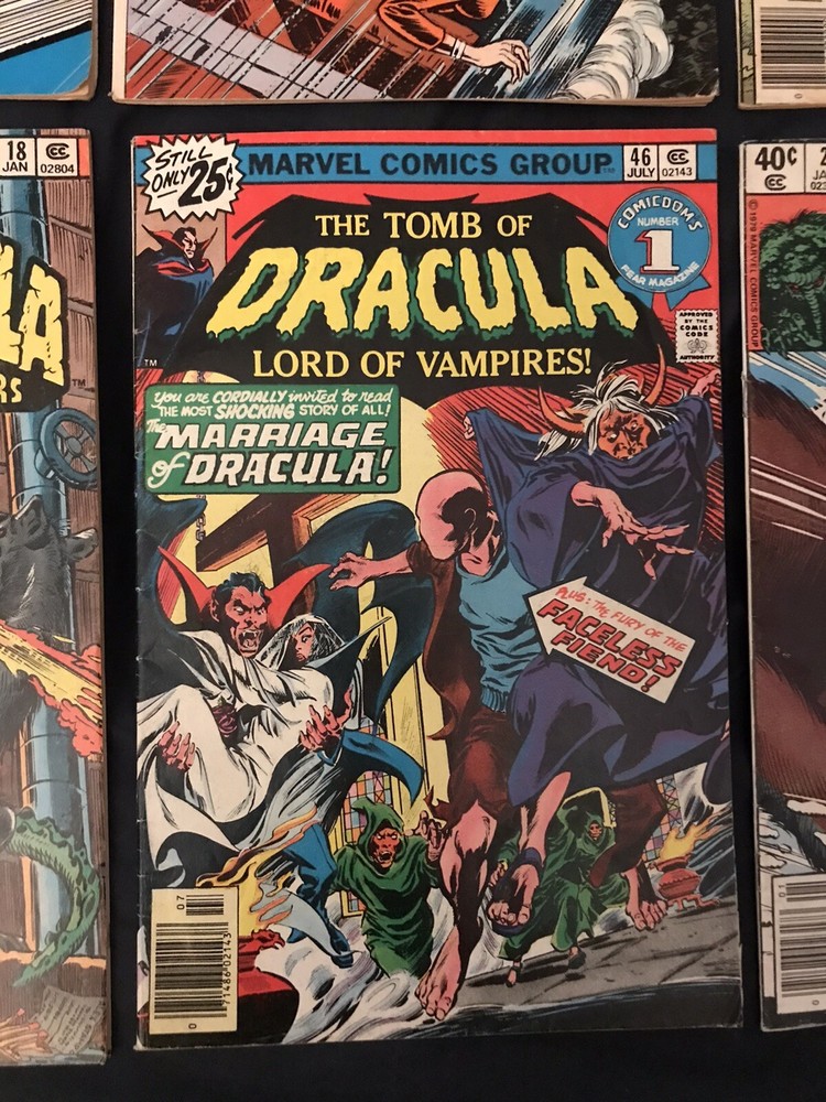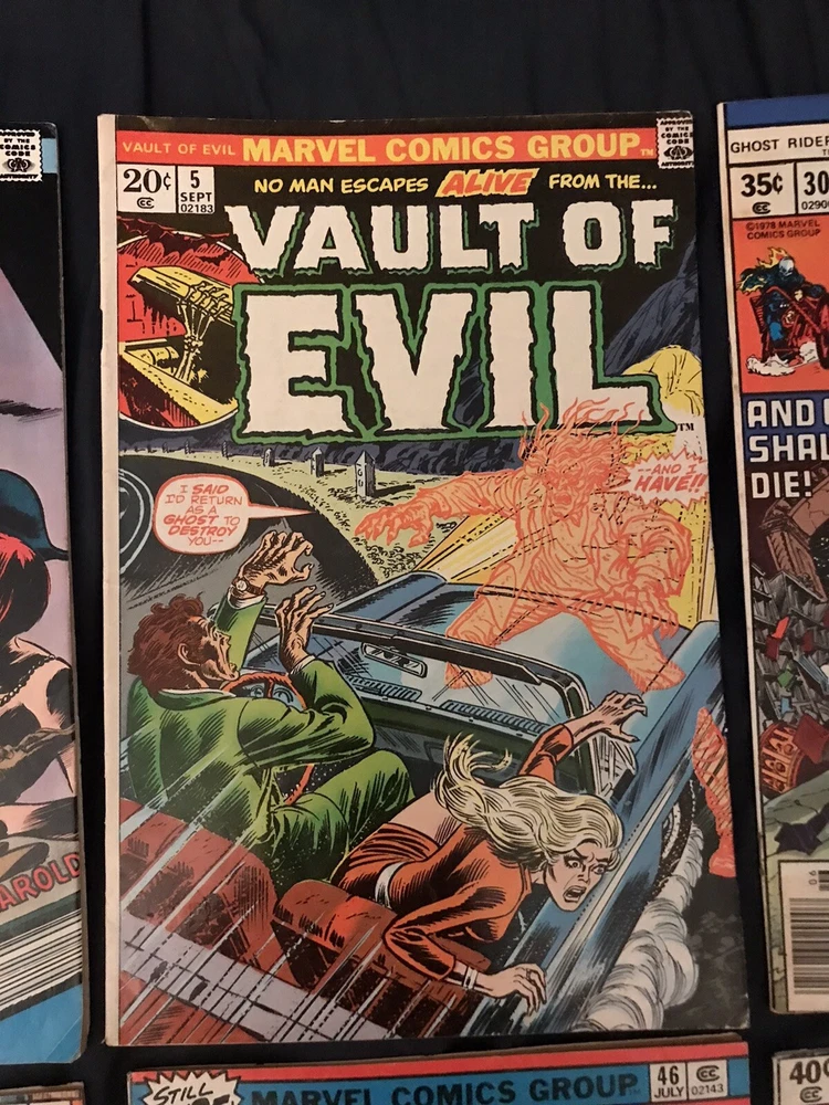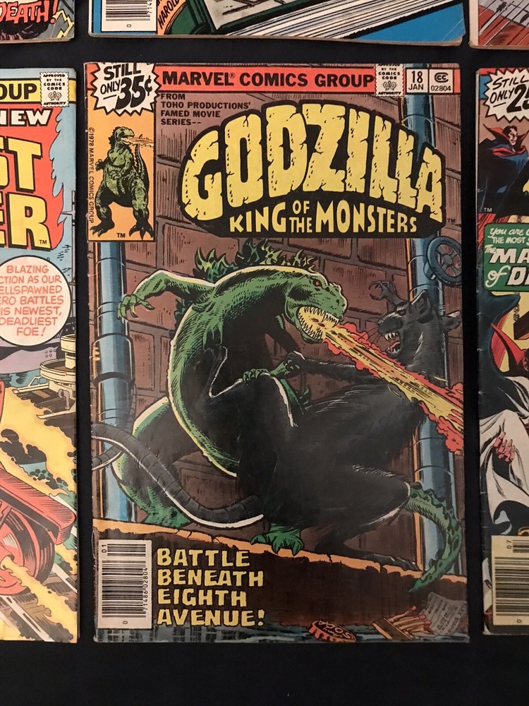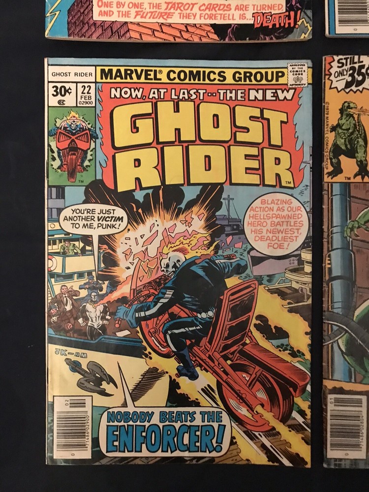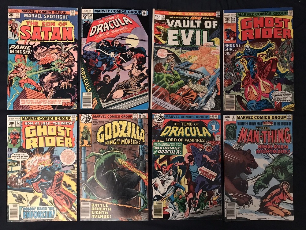 Up for sale is Bronze Age lot of 8 assorted Horror comics put out by Marvel. Condition average is around VG/F to FN- (5.0 to 5.5) but please make your own determination on condition by studying the photos carefully as I am not an expert and they vary! Books are all complete, will be bagged & boarded and shipping is free! Issues are: Ghost Rider #22 Ghost Rider #30 Godzilla #18 Man-Thing #2 Marvel Spotlight #21 Tomb of Dracula #46 Tomb of Dracula #56 Vault of Evil #5 Please feel free to ask any questions as I am always happy to answer in a timely manner. Customer Satisfaction is my #1 priority! Thanks for Looking!!