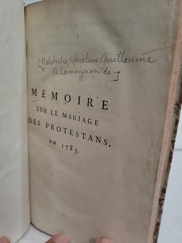MEMOIRE SUR LE MARIAGE DES PROTESTANS 1787 Chretien-Guillaume De Lamoignon VG+ Very good plus condition. See the photos. Combined shipping is available.