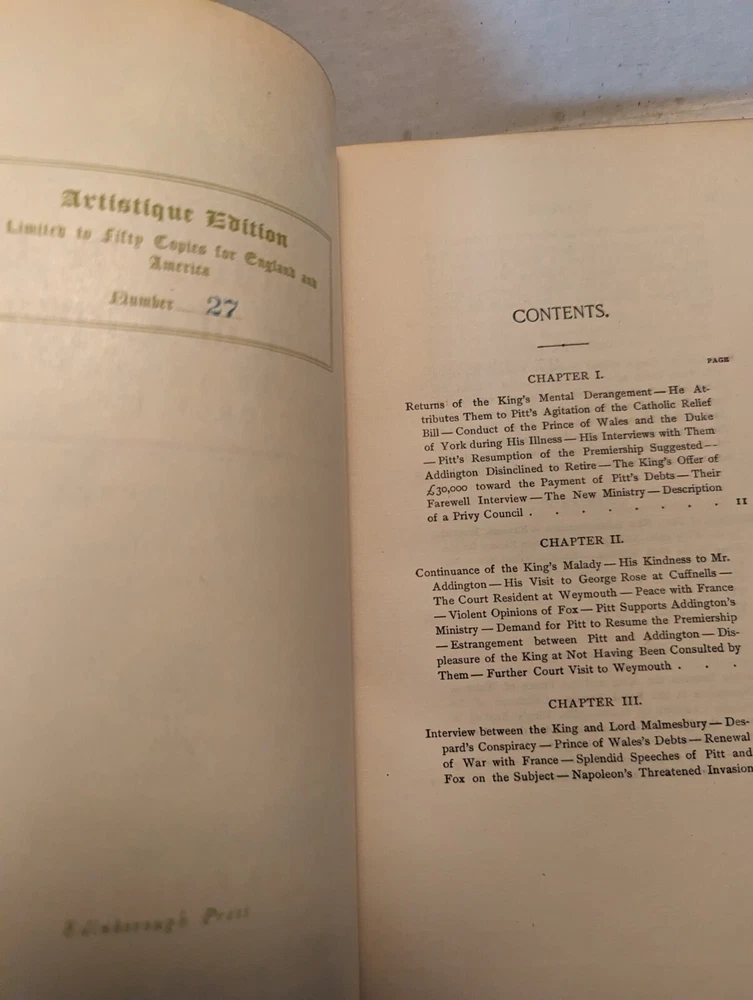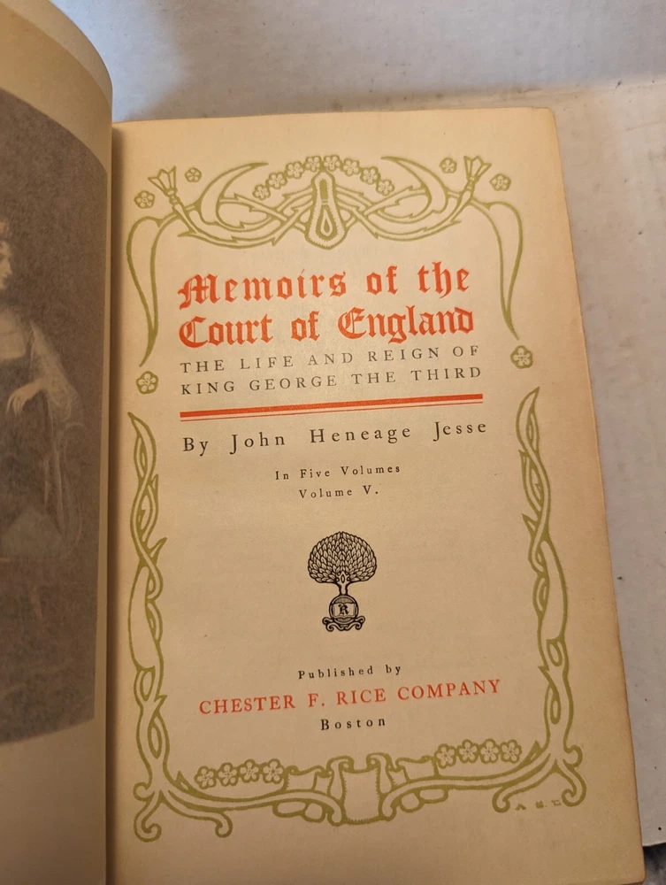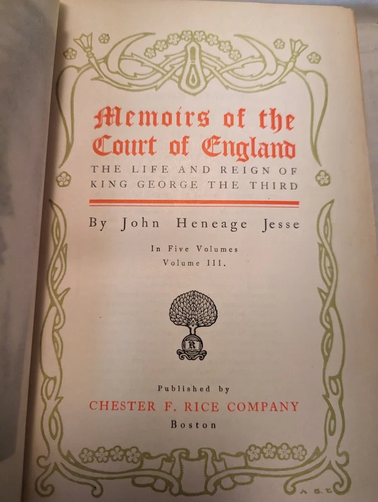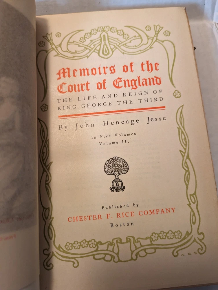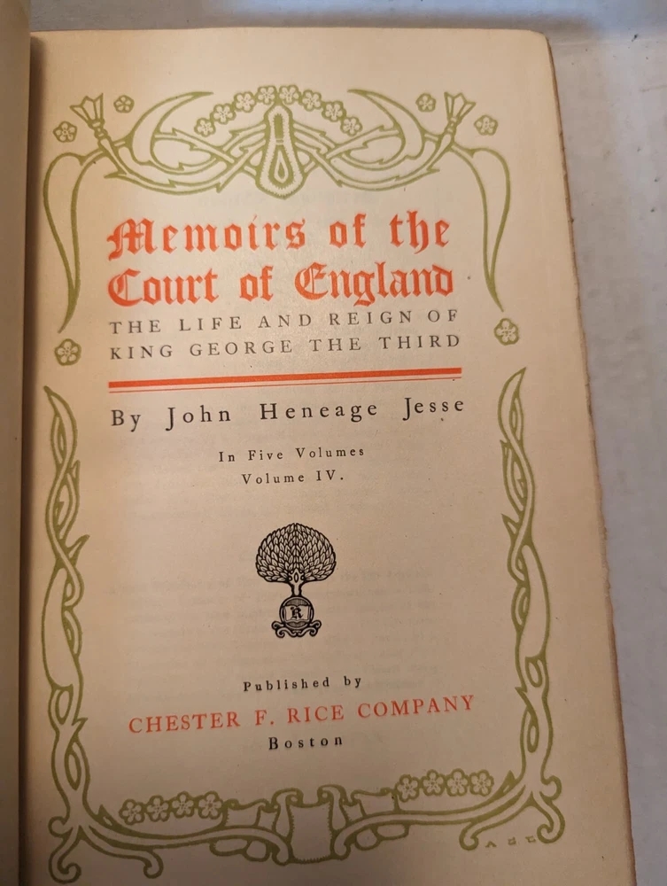 MEMOIRS OF THE COURT OF ENGLAND , George III, Volumes 2-5 BY JOHN HENEAGE. JESSE. These are #27 out of a printing of 50 copies. The pages are in good condition, the book covers have some wear. See pho...