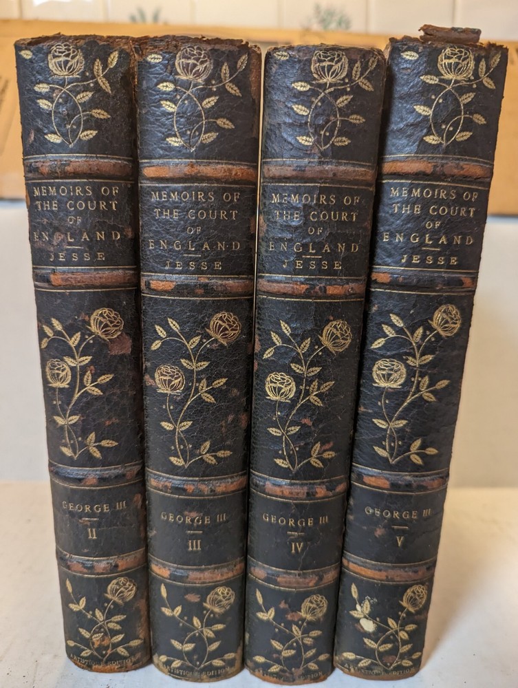 MEMOIRS OF THE COURT OF ENGLAND , George III, Volumes 2-5 BY JOHN HENEAGE. JESSE. These are #27 out of a printing of 50 copies. The pages are in good condition, the book covers have some wear. See photos.