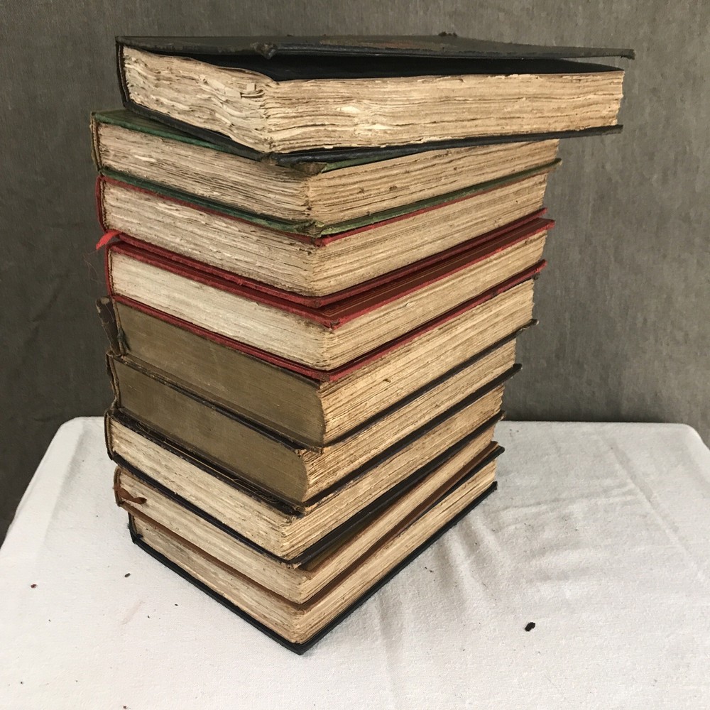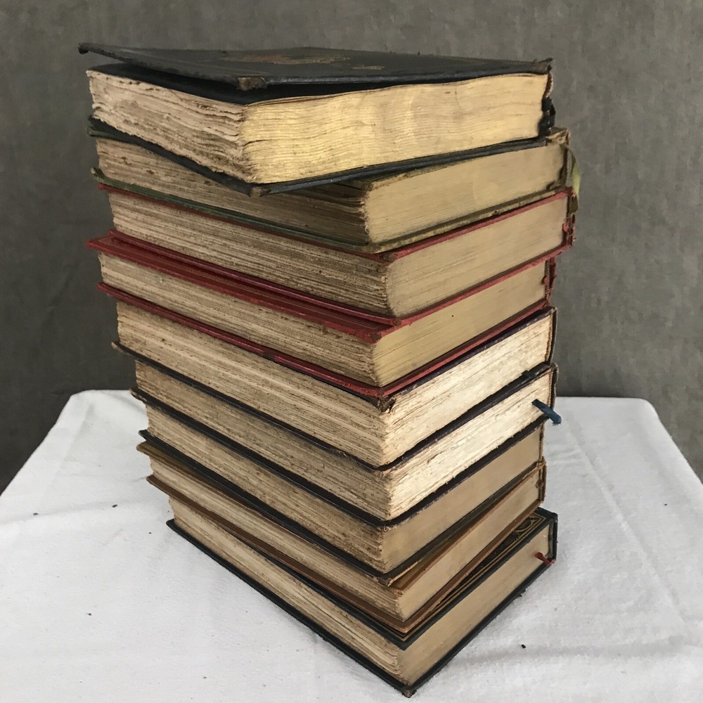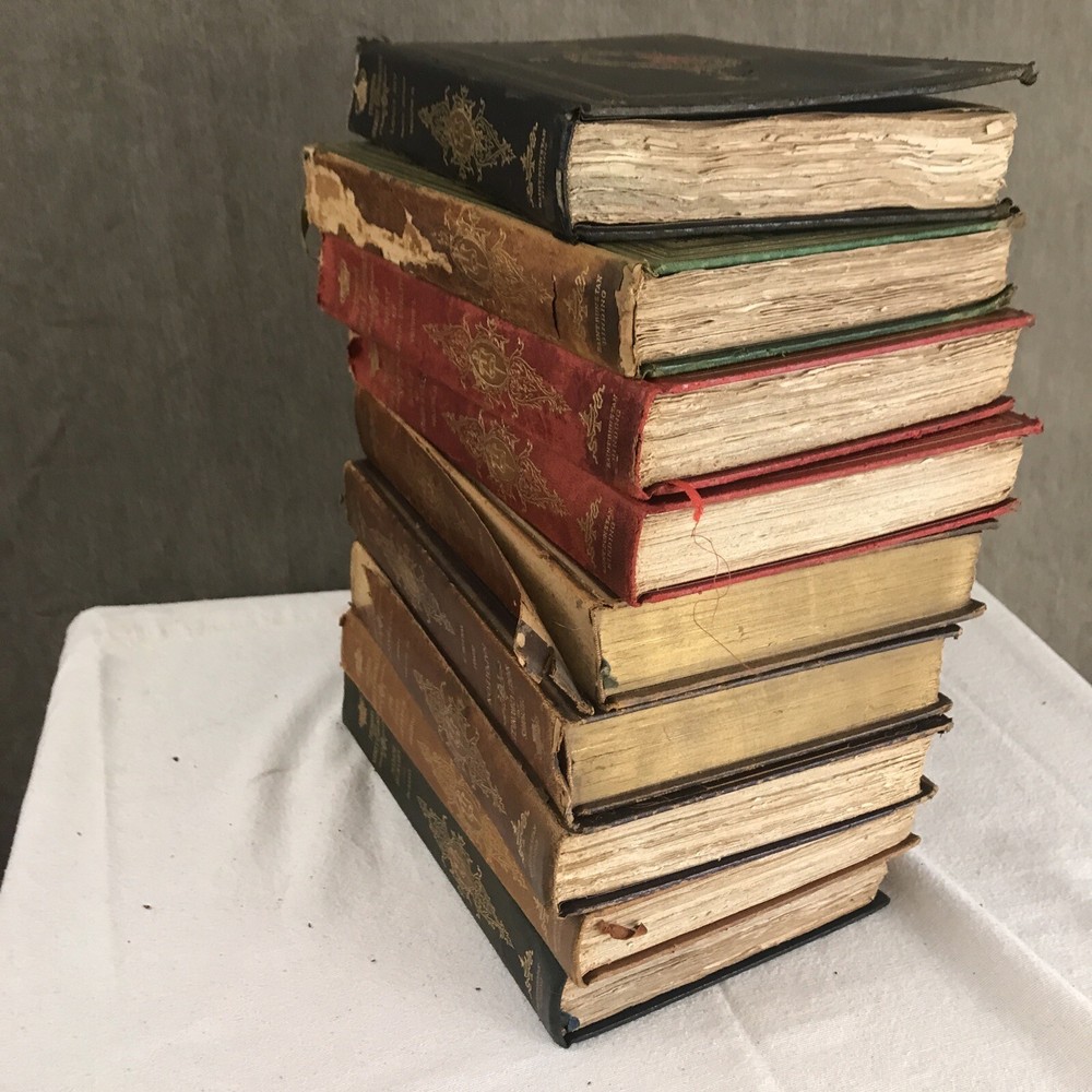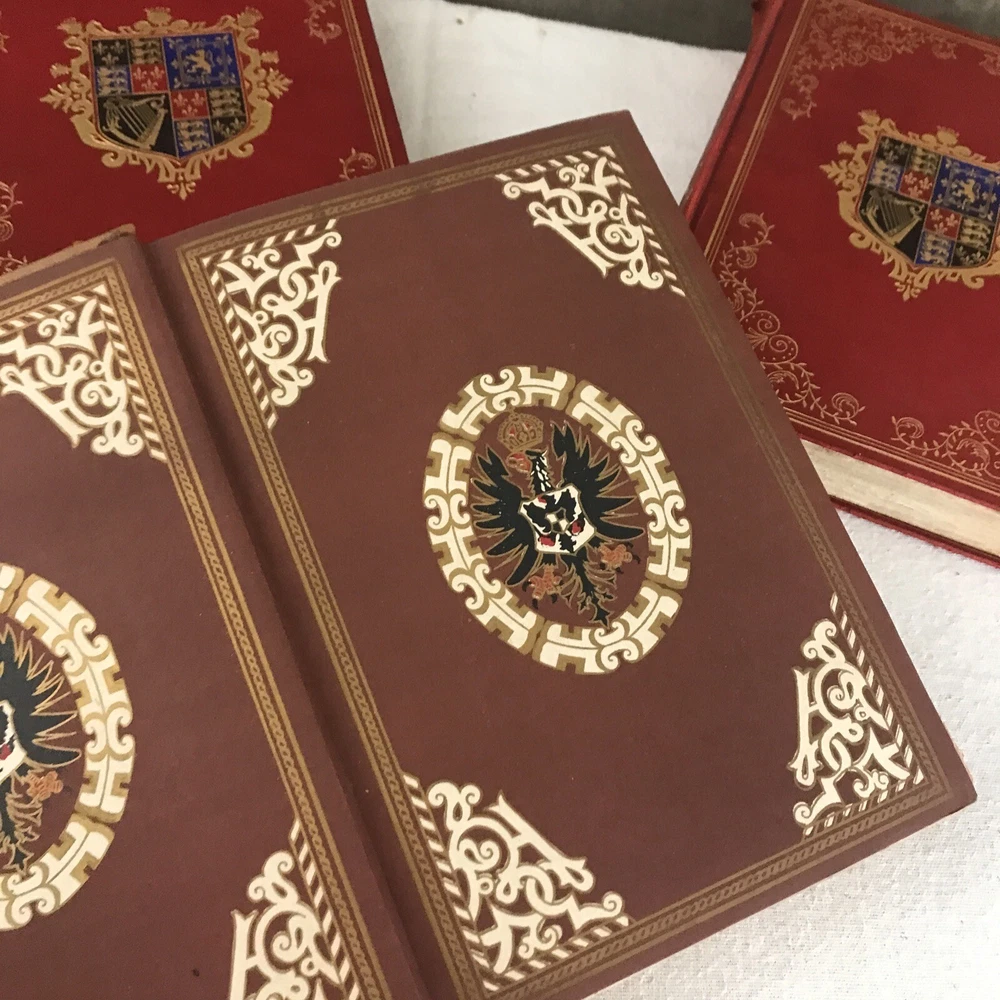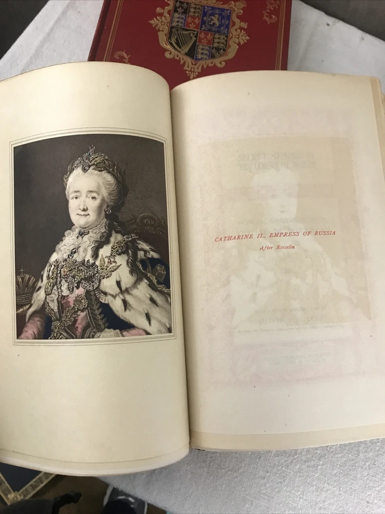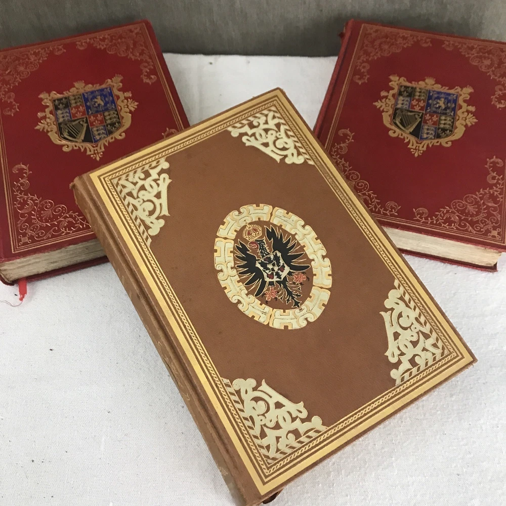 9 of the 10 books from the Memoirs and Secret Chronicles of the heads of Europe. Printed in 1901 and leather-bound. All books have some sunning and wear on the spine. Some have placeholder ribbons in them that are original to the book and delicate. I have tried to highlight the flaws with the photos and description, but I no doubt have missed the occasional spot etc as I did not go through page by page. Diary of John Evelyn Vol 1 and 2 The court of Berlin Madam Dubarry Louise XIV Vol 2 (This one has water damage. Most notable in light staining on the majority of pages and cover not laying flat. Still readable and intact. Marie Antoinette (This one has a fair bit of wear to the leather on the spine Napoleon Vol 1-3 If you have any questions or want pictures of something I didn't get an image of please let me know.
