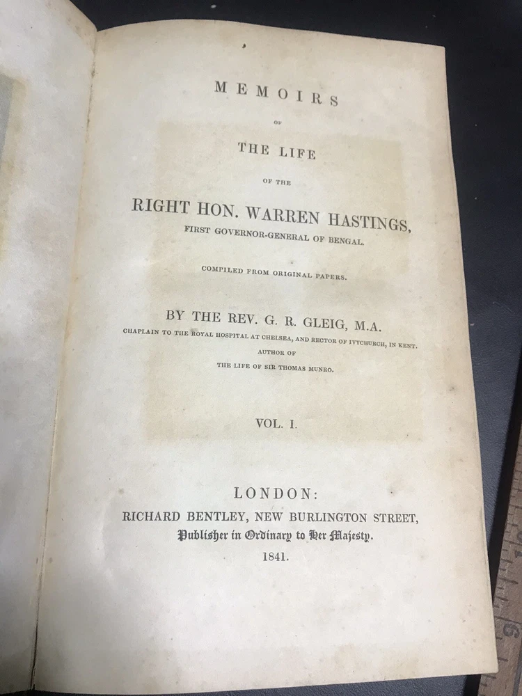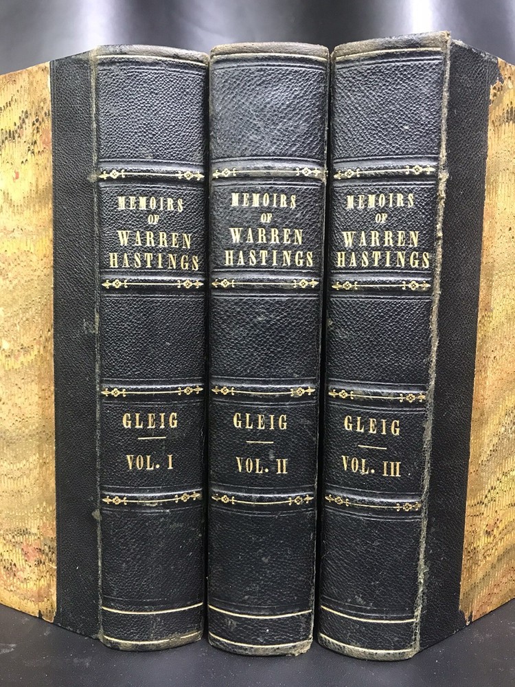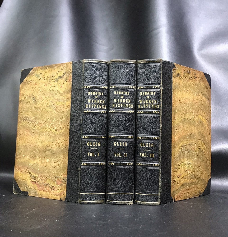 1841, complete three volume set. Bound in three-quarter leather over marbled paper. Foxing on the frontispiece engraved plates and first few pages. Remaining pages are much cleaner. Bindings look good for age; rubbing and starting along outside gutters; gilt is still bright and legible, and overall the books present very well.
