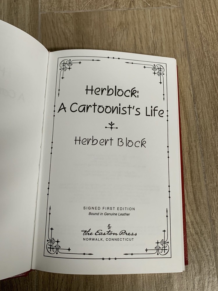 MINT HERB BLOCK - A CARTOONIST'S LIFE Signed Leather-Bound 1st Edition...