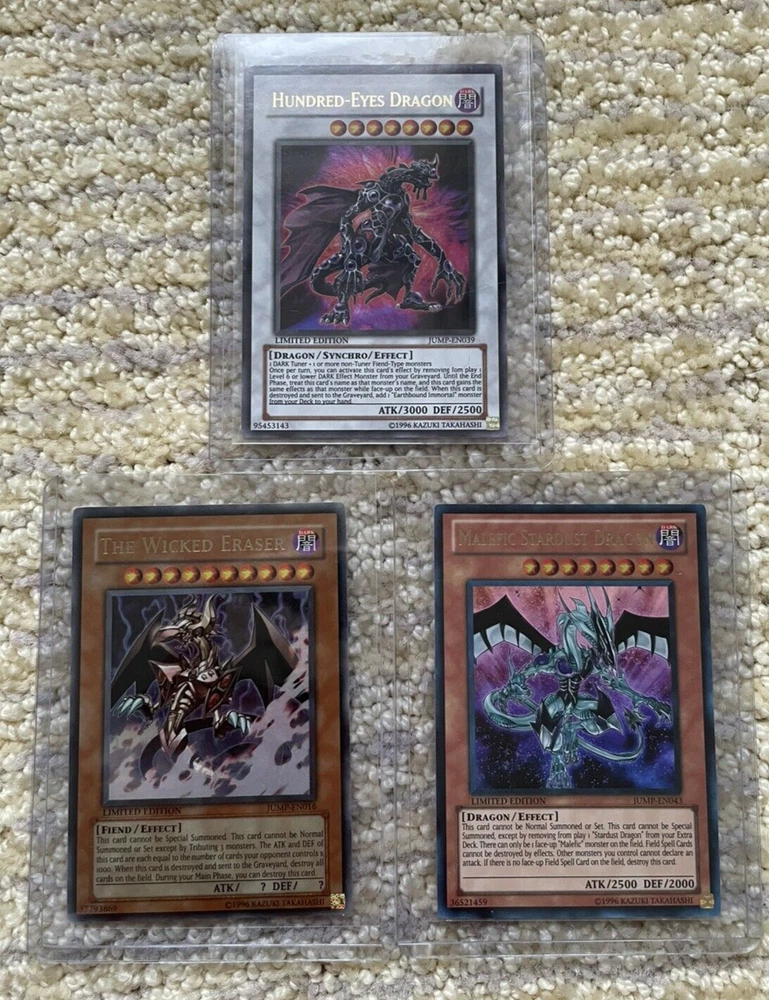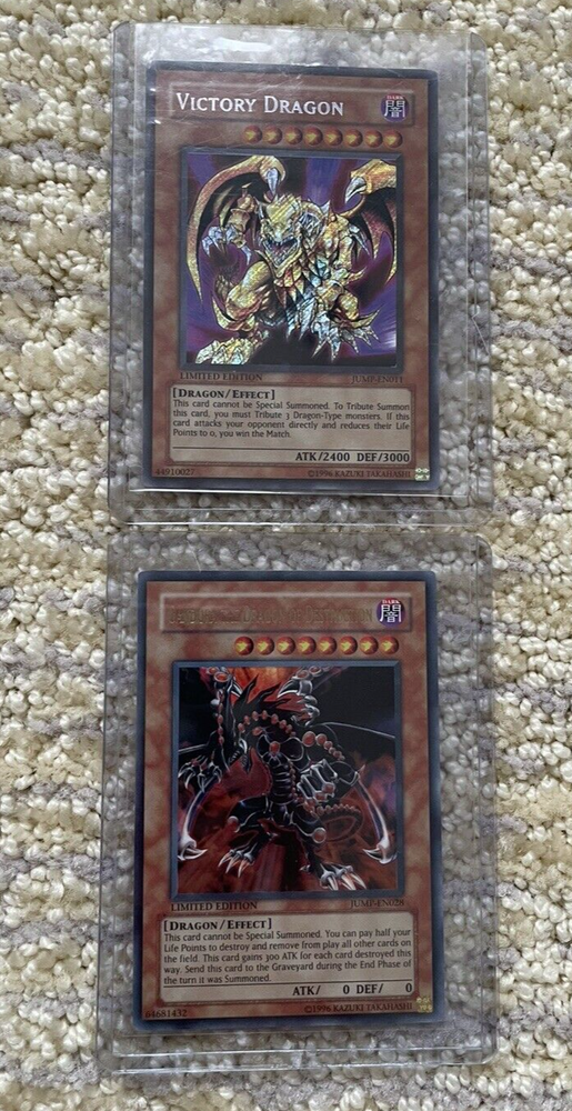 MINT YuGiOh Shonen Jump Promo Card Lot 13 Cards TCG Limited Edition & First Edition RARE All cards are Mint and carefully stored in top loaders to preserve their quality. This YuGiOh card lot features 13 Promo Cards , including: 1 card from a different set with its number, but not from Shonen Jump. 12 cards that are Limited Edition Shonen Jump Magazine Exclusives, released with each issue. Details : Condition : Mint. All cards are in top loaders. Cards Included : OBELISK THE TORMENTOR - JUMP-EN037 OBELISK THE TORMENTOR - BPO2-EN125 FIRST EDITION TRAGOEDIA - JUMP ENO033 CHIMERATECH FORTRESS DRAGON - JUMP EN031 VICTORY DRAGON - JUMP EN011 GANDORA THE DRAGON OF DESTRUCTION - JUMP EN028 THE WICKED AVATAR - JUMP EN017 BEAST KING BARBAROS - JUMP-EN032 NUMBER 30: ACID GOLEM OF DESTRUCTION - JUMP EN059 THE WINGED DRAGON OF RA - JUMP EN045 HUNDRED EYES DRAGON - JUMP EN039 THE WICKED ERASER - JUMP EN016 MALEFIC STARDUST DRAGON - JUMP EN043 These vintage promo cards are highly sought after by collectors and fans of YuGiOh! They will be securely shipped to ensure their pristine condition upon arrival. Please see all pictures Open to offers Thanks!