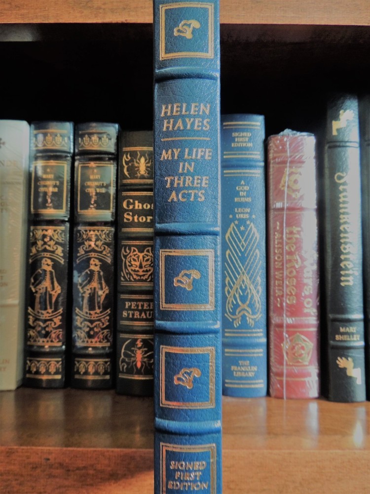 For your consideration, a FINE, UNREAD copy of THE SIGNED FIRST EDITION OF MY LIFE IN THREE ACTS - THE AUTOBIOGRAPHY OF A DISTINGUISED AMERICAN ACTRESS BY HELEN HAYES SIGNED IN BOLD PEN BY THE AUTHOR ON A SPECIAL SIGNATURE PAGE IN A LUXURY FULL LEATHER EDITION FROM THE EASTON PRESS SIGNED FIRST LIMITED EDITIONS SERIES - LONG OUT OF PRINT! A RARE BEAUTIFUL BOOK WITH EXQUISITE ILLUSTRATIONS - PERFECT FOR THAT GIFT THAT WILL LAST FOR GENERATIONS TO ENJOY! Published by The EASTON PRESS AND LONG OUT OF PRINT . THIS IS A TRUE COLLECTOR'S EDITION PUBLISHED BY THE EASTON PRESS IN FULL DARK BLUE AND 22KT GOLD LEATHER, SPECIAL ENDPAPERS, HUBBED SPINE, SATIN RIBBON, 22KT GILDING OF TITLES, COVER DECORATIONS AND PAGE ENDS, ARCHIVAL QUALITY PAPER. THIS RARE AND EXCEPTIONAL BOOK IS IN FINE CONDITION with no sign of previous ownership, ABSOLUTELY BEAUTIFUL! YOUR SATISFACTION IS GUARANTEED! A great collectible title with excellent shelf appeal. S&H IS $4 FOR THIS FINE BOOK in the US ., others set after auction closes. I accept Paypal. Plse check my other fine book listings of Easton Press and Franklin Library full leather classic collector's editions and save on combined shipping. Bid with confidence. Add a map to your own listings. FREE Trial!