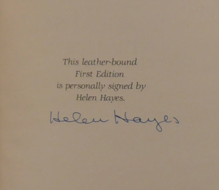 Easton Press HELEN HAYES MY LIFE IN THREE ACTS SIGNED FIRST EDITION One owner (myself). Smoke free home. Easton Press books are the gold standard in the publishing industry, highly collectible and lasting generations. Easton Press Full Genuine Leather Dubbed Spine Accented Wit 22 kt. Real Gold Satin Ribbon Page Marker Distinctive Cover Design Gilded Page Edges To Protect Against Humidity High Quality Acid - Free paper Smyth-Sewn Pages