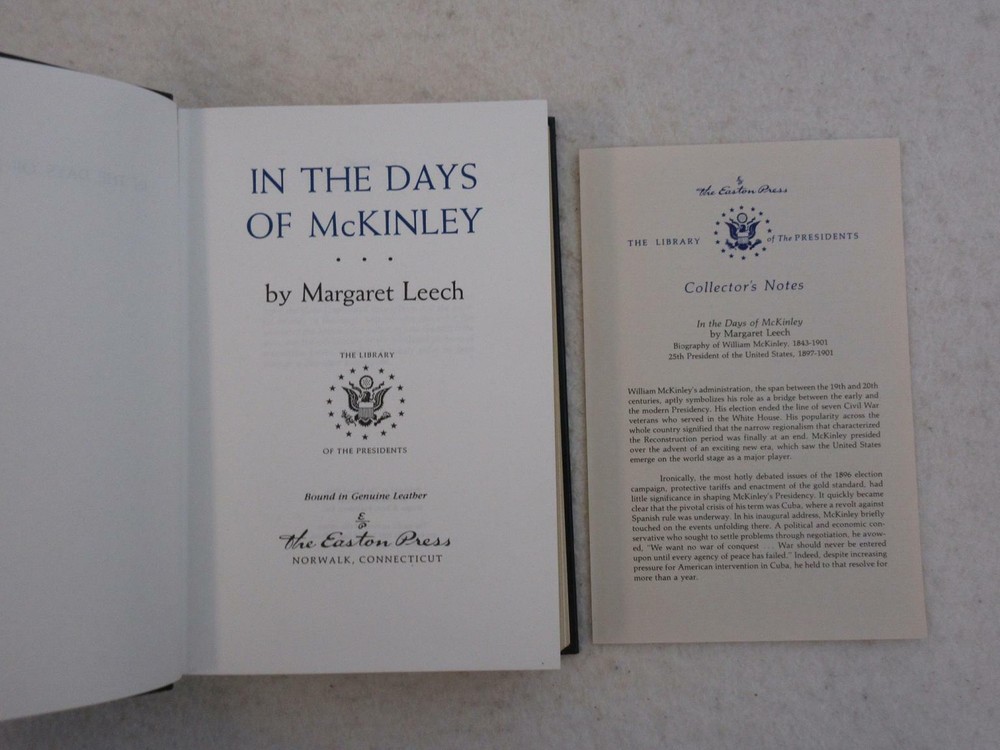 Margaret Leech IN THE DAYS OF McKINLEY Easton Library of the Presidents 1986 In near fine condition. Includes Notes. Please examine photos for details. Condition: We strive to describe and photograph the condition of every item as accurately as possible. Photos are of the actual item that is being sold. Please examine the photos carefully for any condition details and possible flaws. Best Offers: Items are available for offers only after being listed for 30 days. We consider all offers in relation to current market values. We try to respond almost immediately to most offers. Most of our counteroffers are firm but we are open to bargaining. Shipping for US Customers: We combine shipping. When ordering multiple items from us please request a total before paying. We charge postage based on weight plus $1 for each eBay listing. All of our orders are packed carefully to prevent damage during shipment. We ship most of our items within 24 hours. Shipping for International Customers: All international orders are shipped via Ebay's Global Shipping Program. IF AN INTERNATIONAL CUSTOMER IS INTERESTED IN ORDERING MORE THAN ONE ITEM please do not Buy It Now or use the Make An Offer option on the listing. Rather message us first with a list of the items desired along with any offers. After we agree on prices we will combine all the orders into a single listing at the agreed upon total price. This will save you significantly on the cost of shipping. Contact Us: We are available 7 days a week and are happy to answer any questions you may have. Attention Sellers - Get Templates Image Hosting, Scheduling at Auctiva.com.