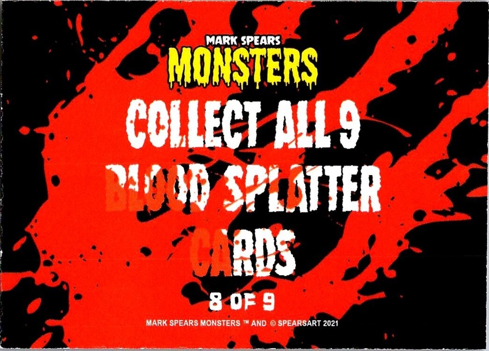 You are bidding on a: Mark Spears Monsters Series #1 Blood Spatter #8 Godzilla King Kong HARD TO FIND Many of these cards have gotten hard to find. The artwork is amazing, and the comic books have taken off in popularity! **I had two of these, this is my last one** FREE, fast shipping