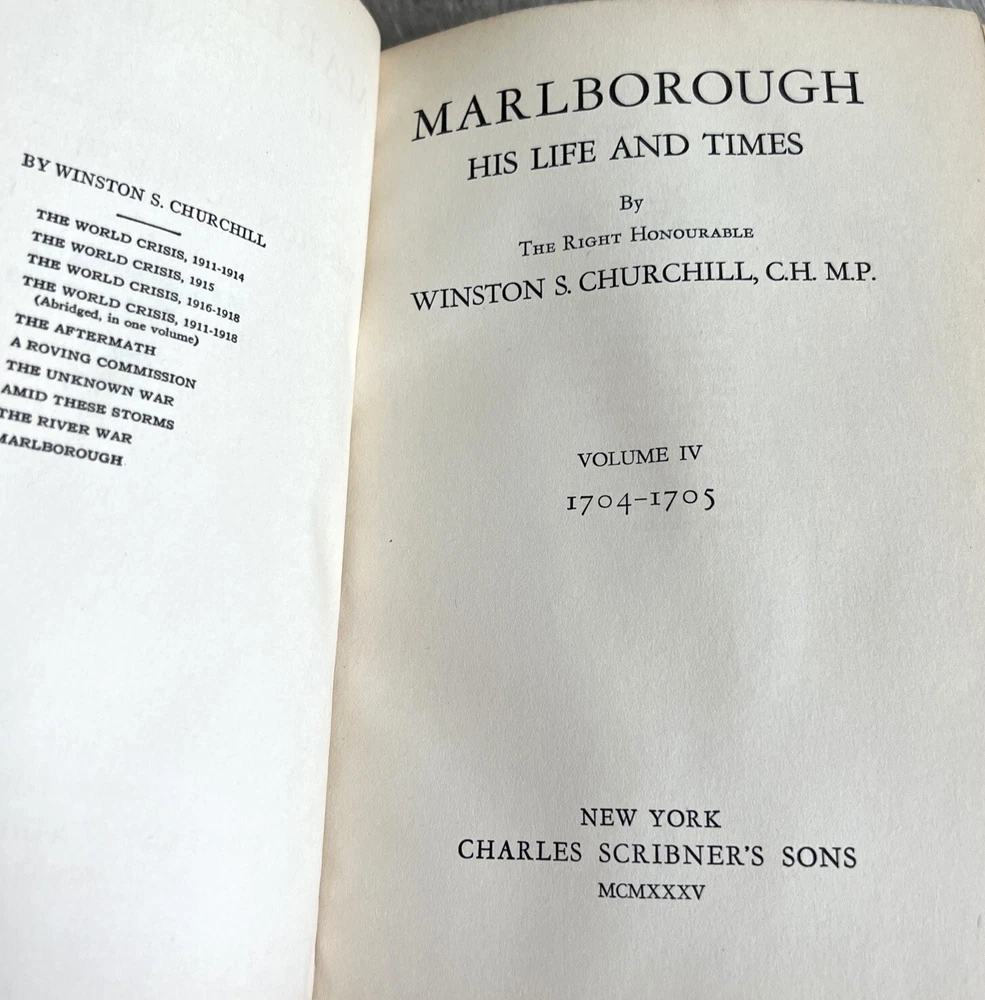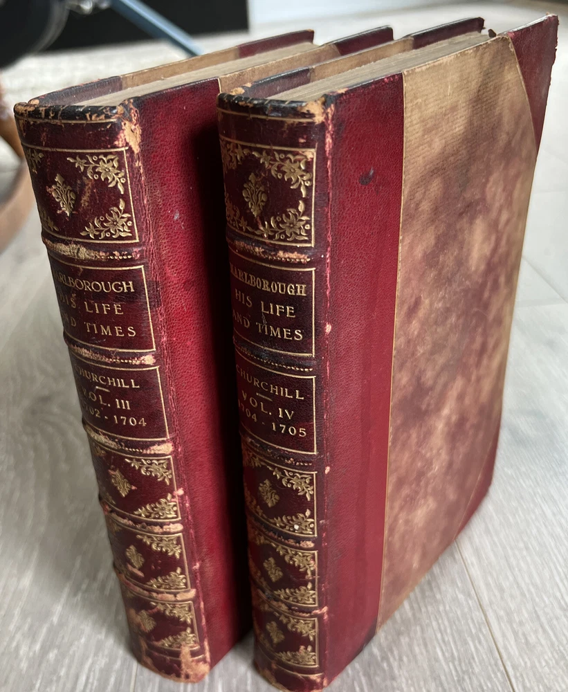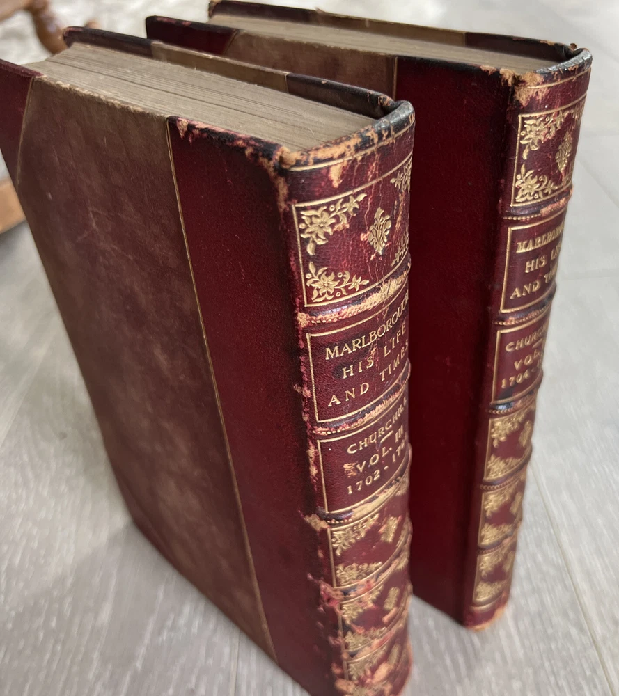 Marlborough His Life and Times Churchill 1st American "A" Printing Vol III & IV Very Rare Set of 2 finely bound First U.S. Printing Volumes from Marlborough His Life and Times. * Volumes III and IV from a set of four volumes. * First American edition, "A" first printing * Winston Churchill (English). * New York: Charles Scribner's Sons, 1935 * Illustrated foldout plates. * Bound by Asprey in half red morocco, ribbed gilt decorated spines, deckle long text block edge, marbled pastedowns and endpapers. Acid spots throughout both volumes. Wear around the edges consistent with age and use. Please see all photos for details.