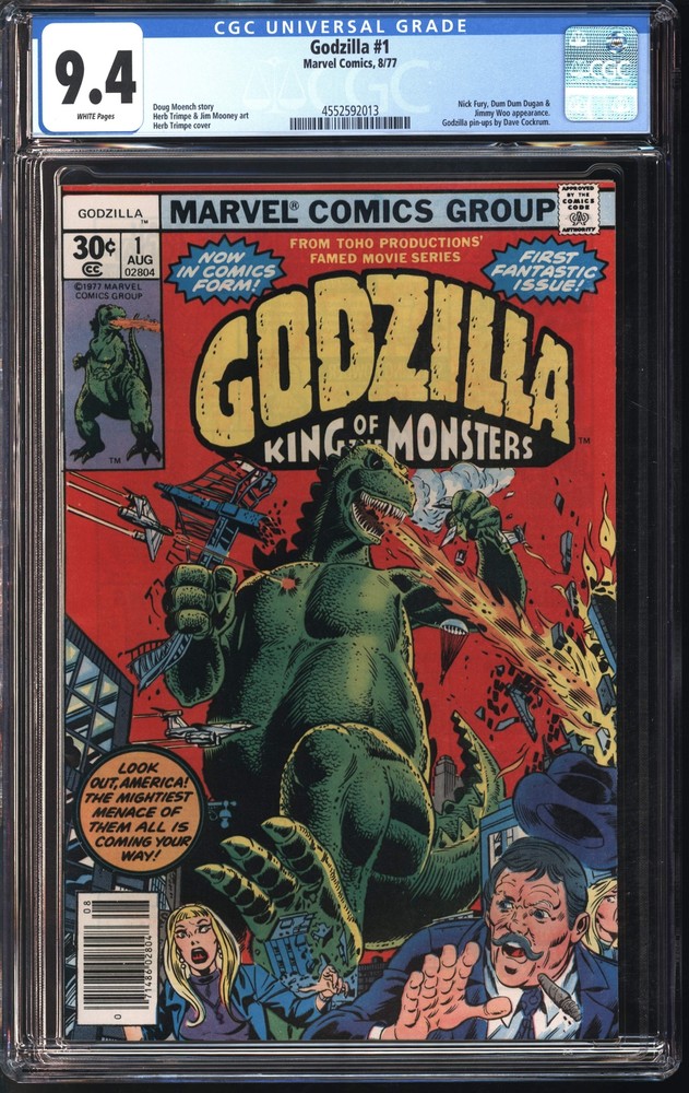 Marvel Comics Godzilla #1 8/77 CGC 9.4 White Pages Artists: Janice Cohen Herb Trimpe John Costanza Joe Rosen Marvel Comics Godzilla #1 8/77 CGC 9.4 White Pages Artists: Janice Cohen Herb Trimpe John Costanza Joe Rosen × × × Buy now and save! Shipping info Click the Shipping & Payments tab above the listing description for more info Price: $15.00 (local shipping) Click the Shipping & Payments tab above the listing description for more info! Additional delivery notes PICK UP OPTION Sorry, our items are NOT available for pick-up. PAYMENT Immediate payment is required upon selecting "Buy It Now" or upon checking out through the cart. We accept payment via U.S. PayPal accounts and all Major Credit Cards, Debit Cards & Google Pay. We are legally required to collect sales tax in those states and localities where we maintain a physical presence (nexus). The applicable amount of sales tax charged to an order will be calculated based on the shipment destination's state and local sales tax laws. Thank you for shopping with us on eBay! Additional Information No additional information at this time Ask seller a question You might also like 1956 Topps Sandy Koufax #79 Graded PSA 4 1954 Topps Al Kaline # 201 Graded CSG 1 1956 Topps Willie Mays #130 Graded PSA 3(MK) 1957 Topps Mickey Mantle/Yogi Berra Power Hitters # 407 Graded CSG 3 Contact To contact our Customer Service Team, simply click the button here and our Customer Service team will be happy to assist. Ask seller a question © Fantast Collection Shipping & Payments Shipping is a flat rate across US at a rate of $15.00 Payment Accepted Payment Methods Immediate payment is required upon selecting "Buy It Now" or upon checking out through the cart. We accept payment via U.S. PayPal accounts and all Major Credit Cards, Debit Cards & Google Pay. We are legally required to collect sales tax in those states and localities where we maintain a physical presence (nexus). The applicable amount of sales tax charged to an order will be calculated based on the shipment destination's state and local sales tax laws. Thank you for shopping with us on eBay! Returns Returns are accepted Items must be returned within 30 days of the auction ending Seller will pay for return shipping. Additional Information: Free Returns withing 30days eBay integration by