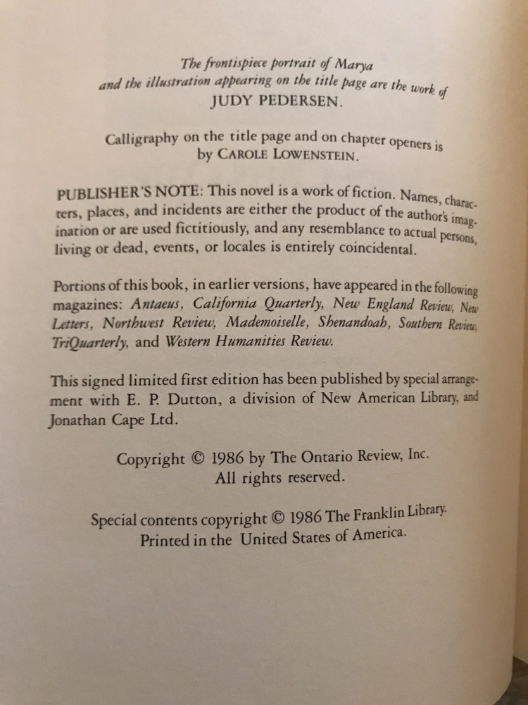 This stunning Franklin Library edition is a collector's dream—full leather binding, 22kt gold accents, and a signed first edition in pristine condition. The satin ribbon and included original letter from the publisher add even more charm. A rare find from a long-stored estate, it’s clearly been treasured. The craftsmanship is exceptional, making it a perfect centerpiece for any serious book lover’s collection. Don’t hesitate to reach out for more details—this one feels truly special!