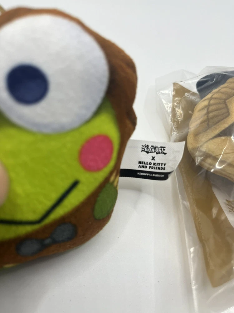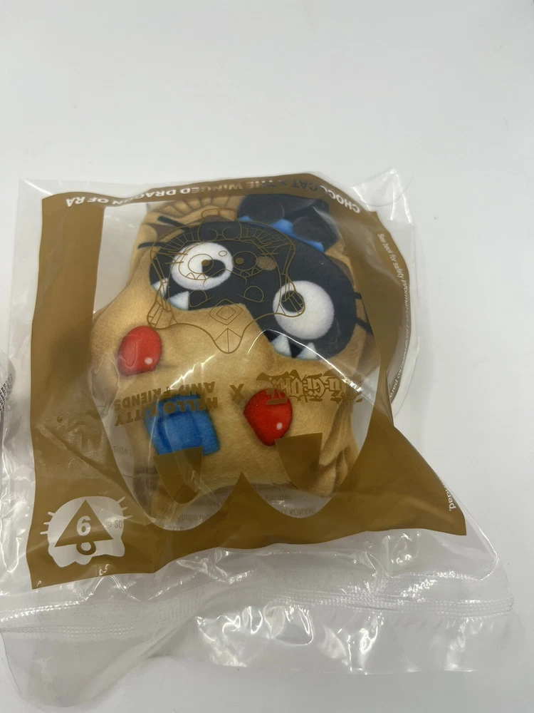 Hello Kitty and Yu-Gi-Oh! with the McDonald’s Happy Meal Hello Kitty x Yu-Gi-Oh! Winged Dragon of Ra plush toy. Here’s the enchanting scoop: The Crossover : McDonald’s has brought together two iconic worlds: the adorable Hello Kitty and the legendary Yu-Gi-Oh! trading card game. In this delightful collaboration, plush toys mash up Hello Kitty characters with famous Yu-Gi-Oh! cards. The Plush Toy : Meet the star of the show: Chococat x The Winged Dragon of Ra ! 🐱🔥🐉 Chococat , Hello Kitty’s feline friend, takes on the majestic form of The Winged Dragon of Ra , one of the most powerful Egyptian God cards in Yu-Gi-Oh! Imagine a cute, cuddly Chococat with golden wings, fiery eyes, and the might of an ancient deity. It’s a fusion of cuteness and dueling prowess! Collect Them All : The Happy Meals offer a total of nine plushies to collect. Each combines a Hello Kitty character with a Yu-Gi-Oh! card. So, whether you’re a fan of Blue-Eyes White Dragon or Dark Magician, there’s a plushie waiting for you. Display and Play : Each toy comes in a plastic bag (a departure from the international release, which came in boxes). Plus, it features a fabric loop, so you can hang up your Hello Kitty character for display. Whether you’re a collector, a duelist, or just a lover of all things cute, these plushies add a touch of magic to your day. Remember, when you unwrap this plush toy, you’re holding a piece of pop culture synergy—a bridge between Hello Kitty’s sweetness and the mystique of Yu-Gi-Oh! cards. So go ahead, summon your inner collector and embark on this delightful adventure **Also included is the Kuriboh Plush not in the bag but very clean** **Please contact me with and questions** **Will ship next day**