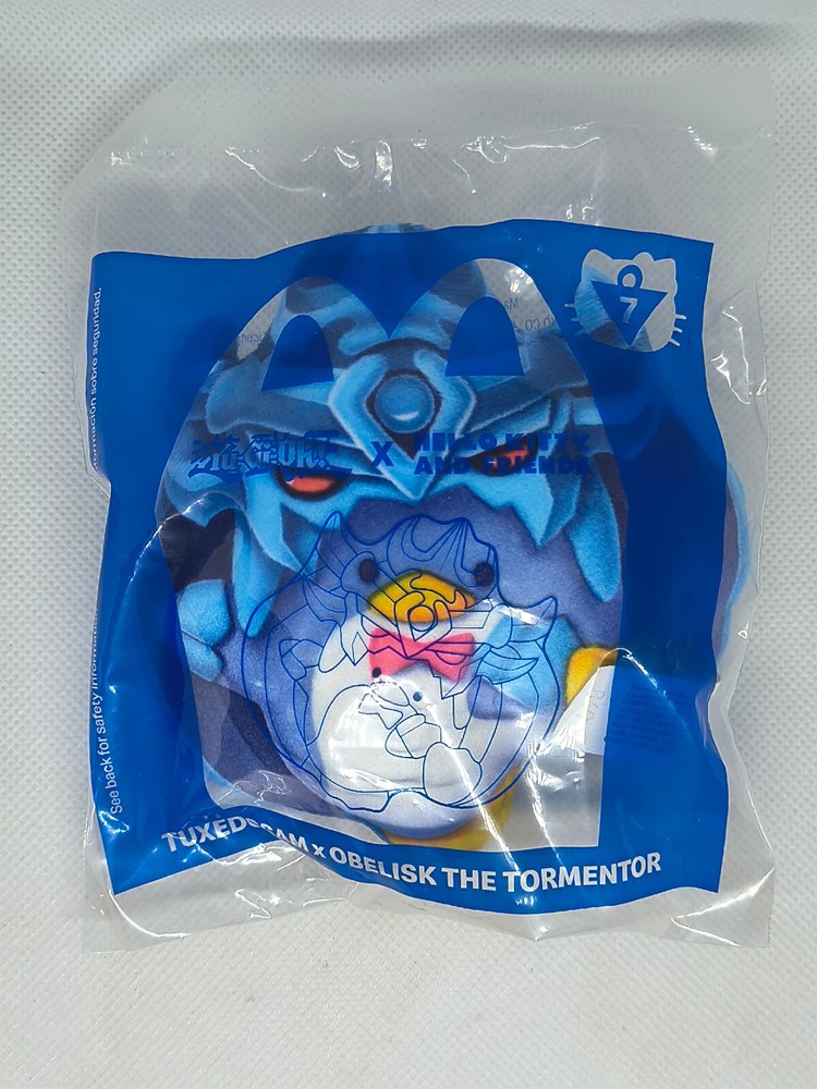 McDonald's had a Hello Kitty x Yu-Gi-Oh! Happy Meal collaboration in the United States from August 20–September 16, 2024, or while supplies lasted. The collaboration featured nine plushie toys that combined Hello Kitty characters with Yu-Gi-Oh! cards: Tuxedo Sam x Obelisk the Tormentor #7