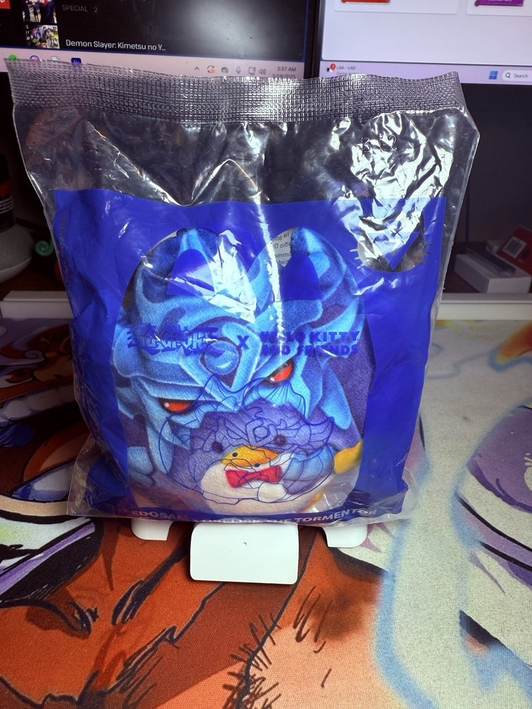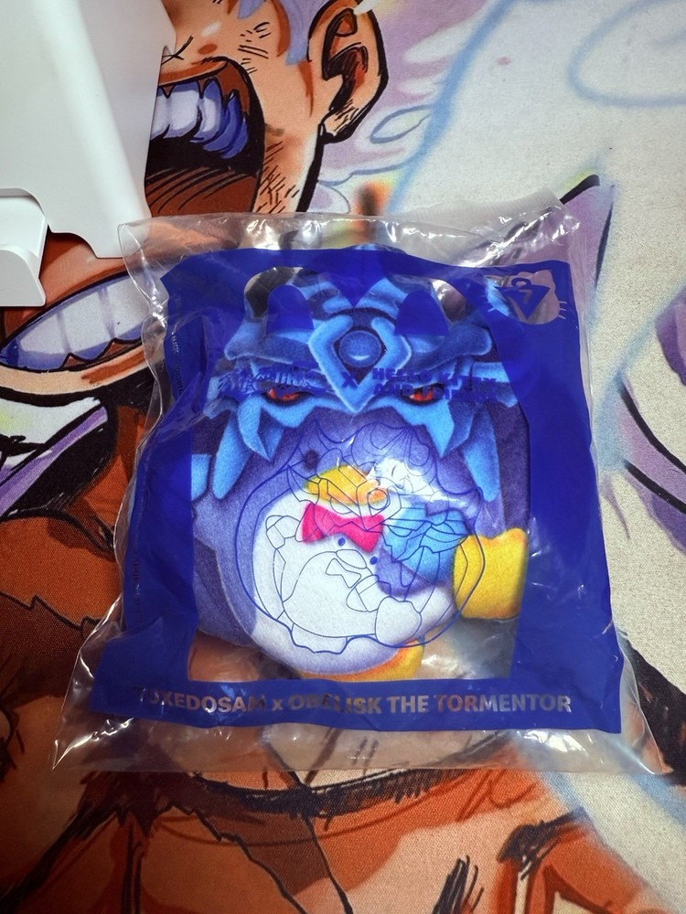This Hello Kitty Tuxedo Sam is a must-have for any Hello Kitty or Yu-Gi-Oh fan! With its adorable but fierce Obelisk The Tormentor design, it's sure to be a hit with kids and adults alike. This McDonald's meal toy is part of the Yu-Gi-Oh series and is perfect for collectors and players alike. The toy is brand new and in excellent shape, making it a great addition to any collection.