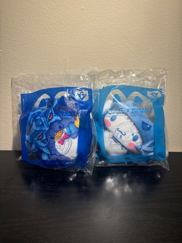 Set of 2 McDonald's Hello Kitty x Yu-Gi-Oh toys. Includes Cinnamoroll x Blue Eyes White Dragon and Tuxedosam x Obelisk the Tormentor. Both toys are brand new, sealed.