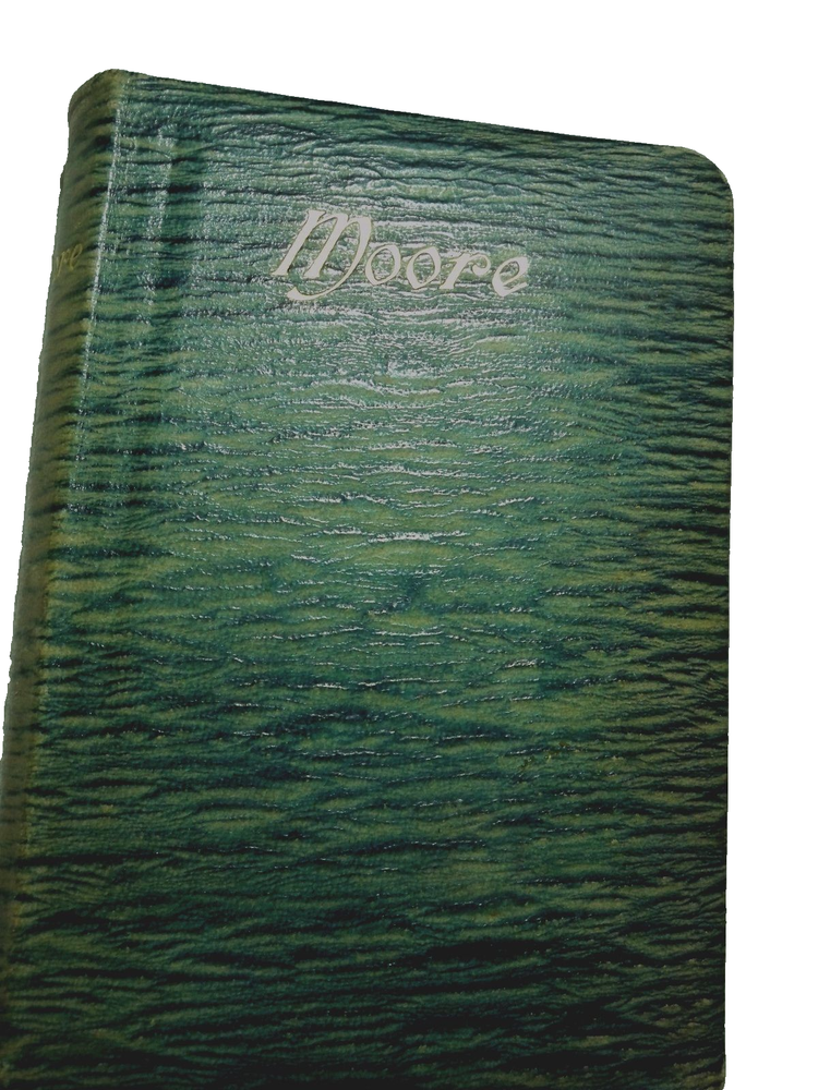 Antique Book Memoir of Thomas Moore Hard Copy Leather Bound 1920 Irish poet and humorist born in 1779. Includes memoir of Thomas More and TOC. Green leather cover with gold lettering on cover and spine. Gilt edge. We have found no writing or marks throughout. Binding is tight. Minor edge wear. Spine and end papers are faded. Please look at the pictures carefully. Feel free to send questions. Ships fast! Items are shipped within one business day of when payment is received. Guarantee : Satisfaction guaranteed. 100% of the purchase price will be refunded if the item is returned within 30 days. Please check out our store Black Hammock Collectibles .