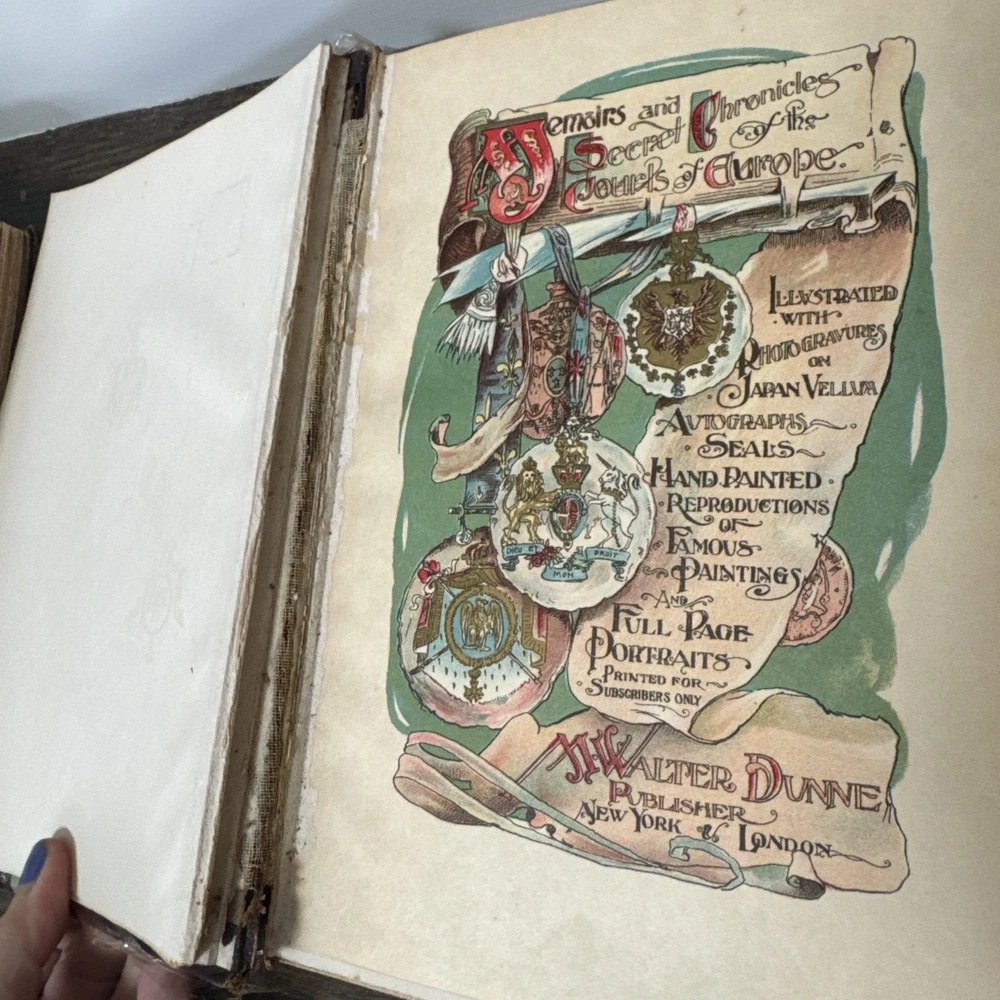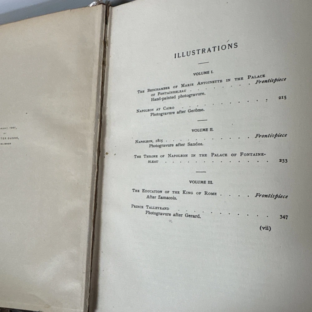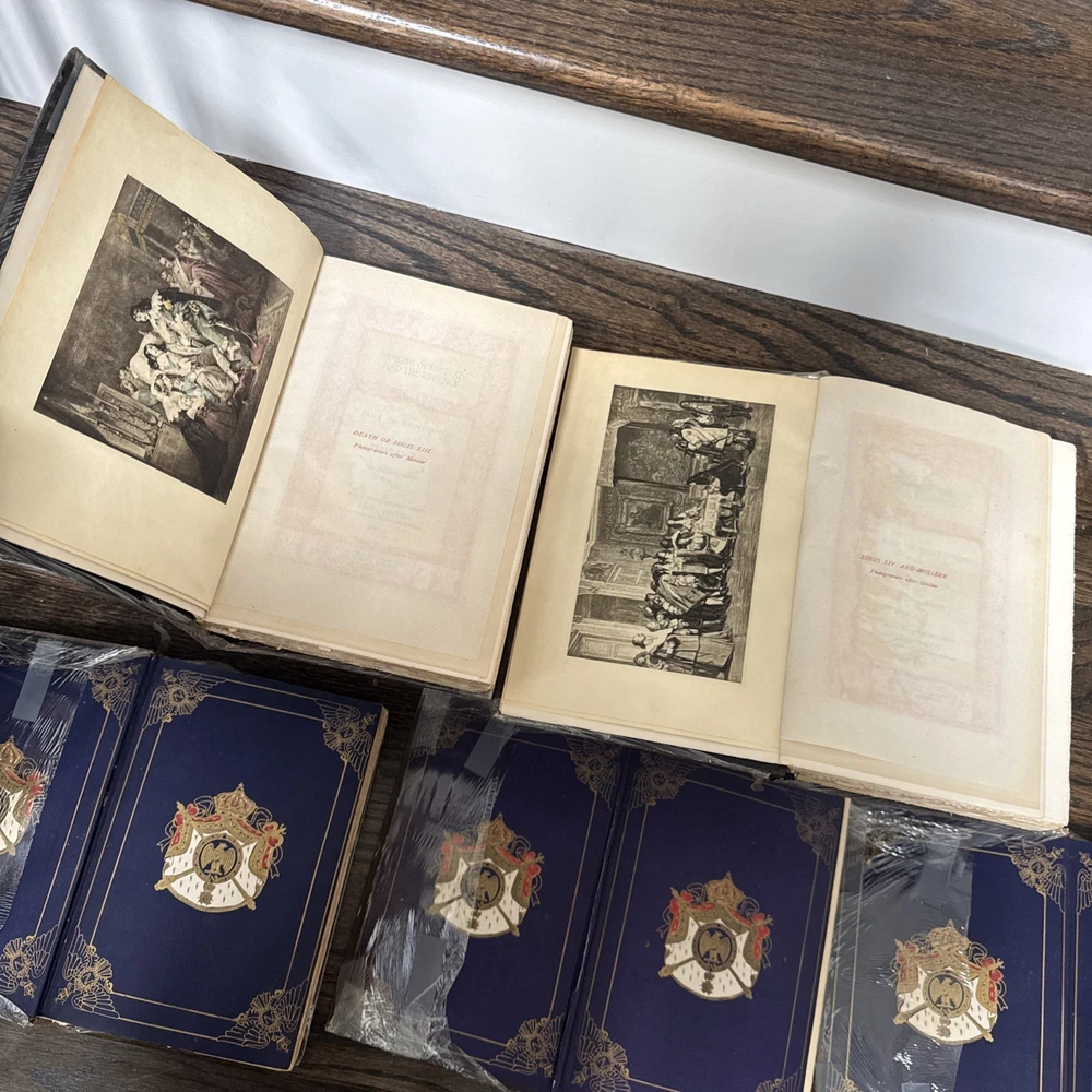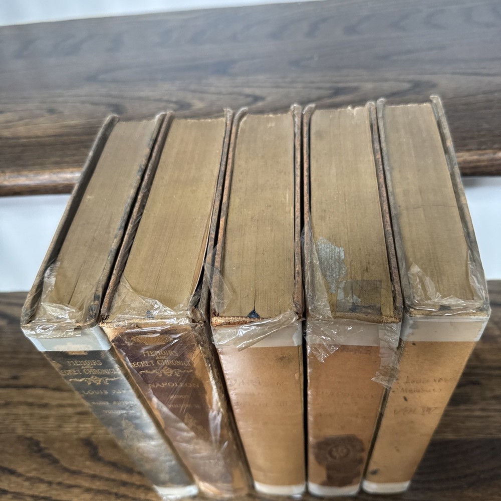 Please see all photos for condition . Please be aware of these books are very old and the condition shows the bindings are worn and pulling , the owner has tried to care for them and covered in a book wrap but please take note that these books are very very worn and will be sold as is condition . Please let me know if you have any questions or would like any further photos Delve into the rich tapestry of European history with this captivating lot of 5 books, entitiled "Memoirs And Secret Chronicles", which offer an insightful glimpse into the lives of French Royals. The set includes narratives on Napoleon, Louis XI, and Junot, providing a comprehensive view of their reigns and the events that shaped their times. Each book is a vintage original printed in 1901 by the St Dunstan Society, Akron Ohio. They are bound in elegant leather and published in English, making them a prized addition to any history buff's collection. With no inscriptions or signatures, these books are a pure celebration of the subject matter, ready to find their place in your personal library.