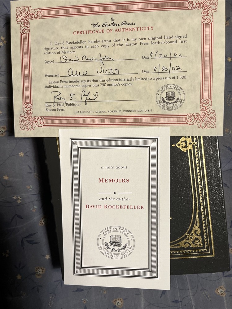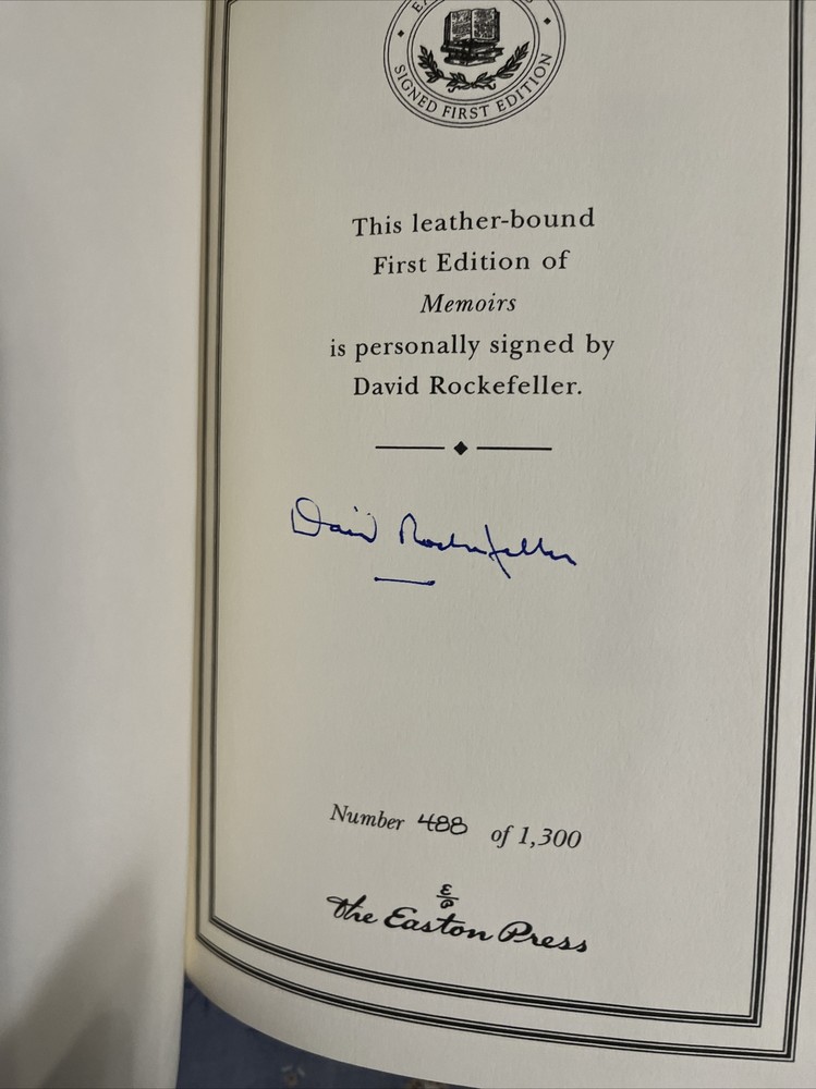 Memoirs, David Rockefeller, Easton Press, Signed First Edition, copy 488 of 1,300, Leather Bound.