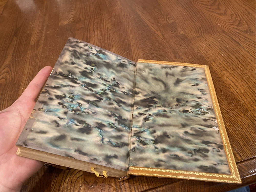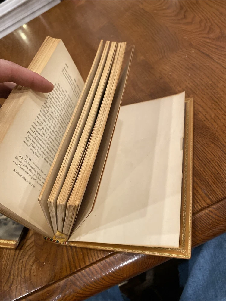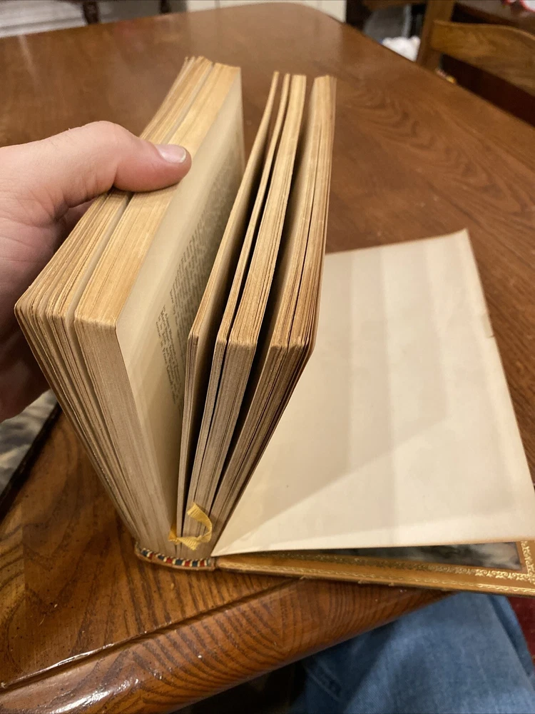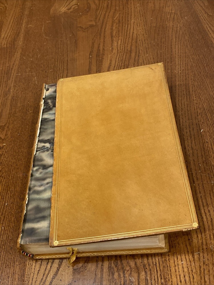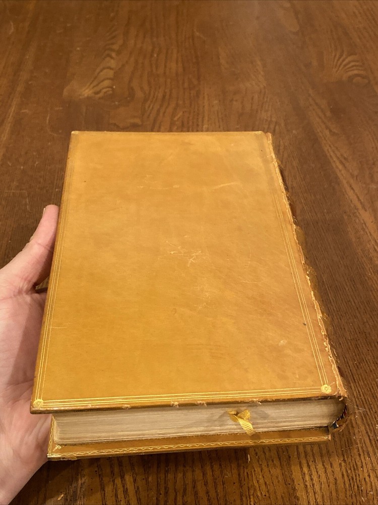 Front cover is detached as shown. Very good condition overall for its age besides the cover being detached. High end leather bound INSCRIBED BY GOVERNOR OF PA BILL SCRANTONS FATHER From the personal estate of Bill Scranton GOVERNOR of the state of Pennsylvania