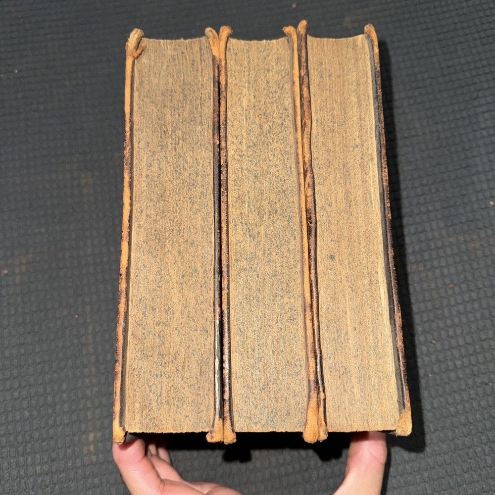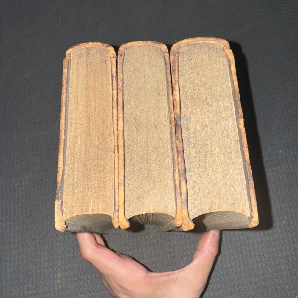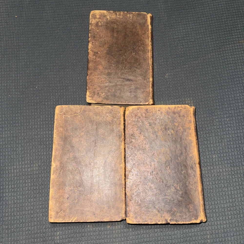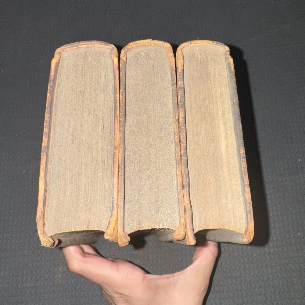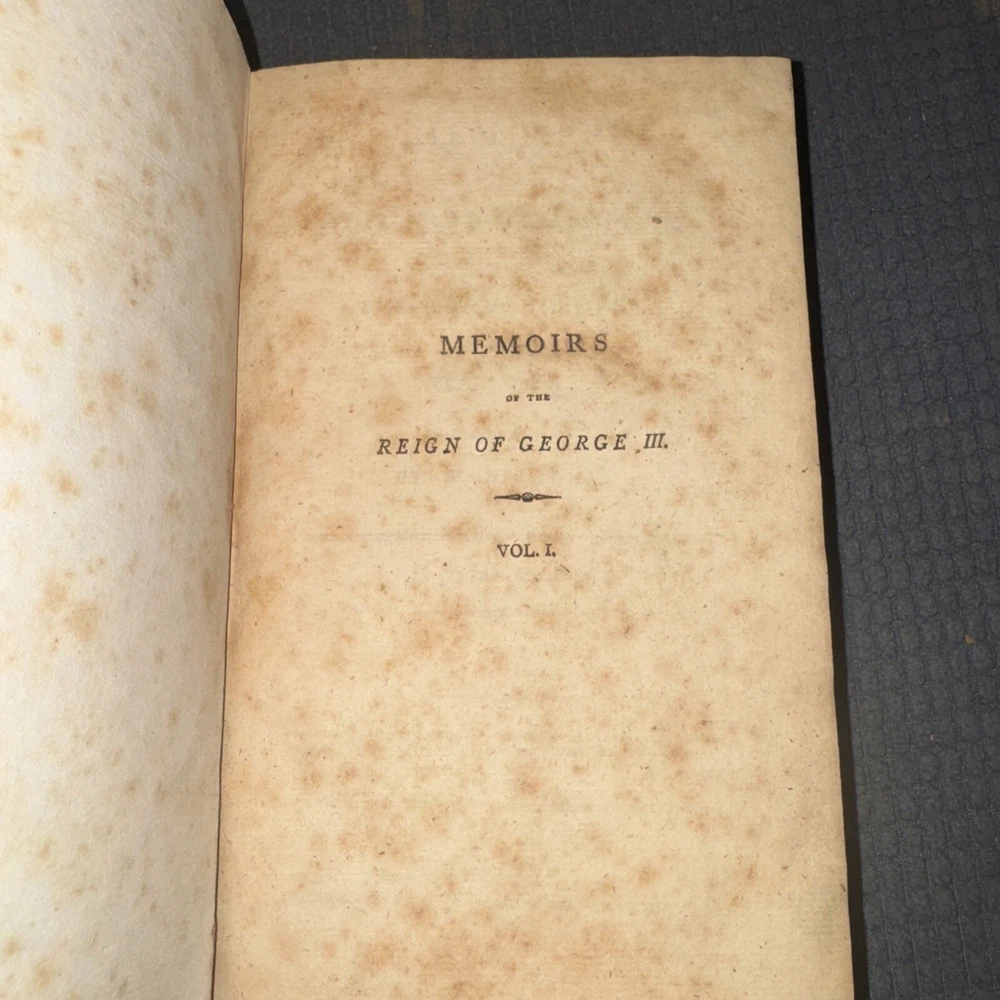 I combine shipping and post new items daily! Please look at all pictures and ask any questions before purchasing. I do my best to show and describe all flaws, so you know exactly what you are buying. Follow my store for many more great books and deals. Thanks for looking and supporting my business! Inventory#420 Description: Memoirs of The Reign of George iii by W. Belsham Complete in 3 Volumes 1802. Worn leather covers and cracked leather with some loss on spines. Spines have mislabeled numbering. Vol 1 marked 3, tight covers with 496 pages. Last page has torn bottom corner. vol 2 marked 4, tight covers and 567 pages. and vol 3 marked 5, tight covers and 558 pages. Pages have staining and foxing present with old book smell. 8 1/4x5 1/4x 1 1/2”.