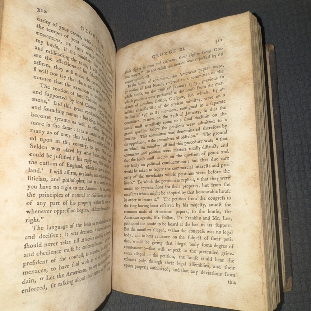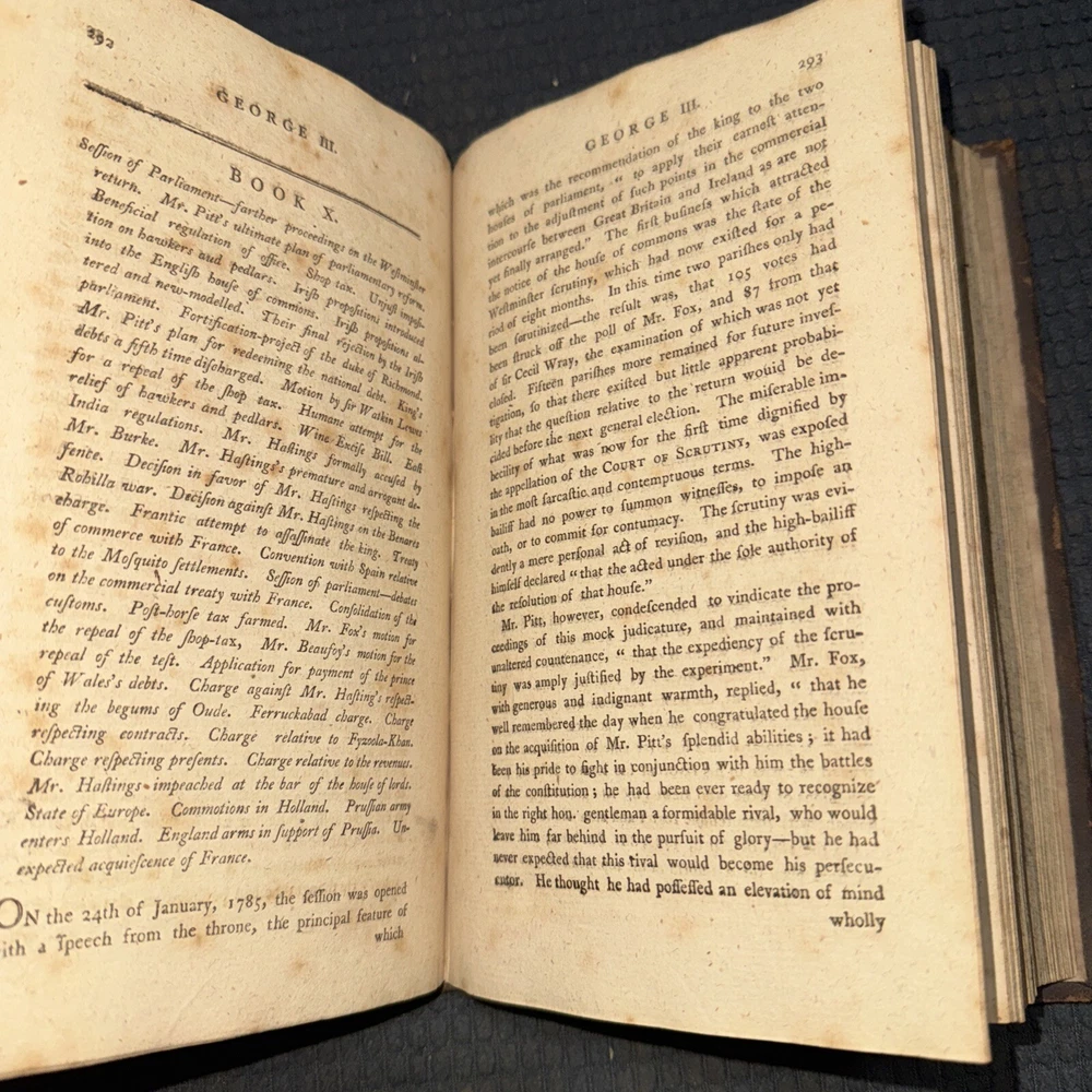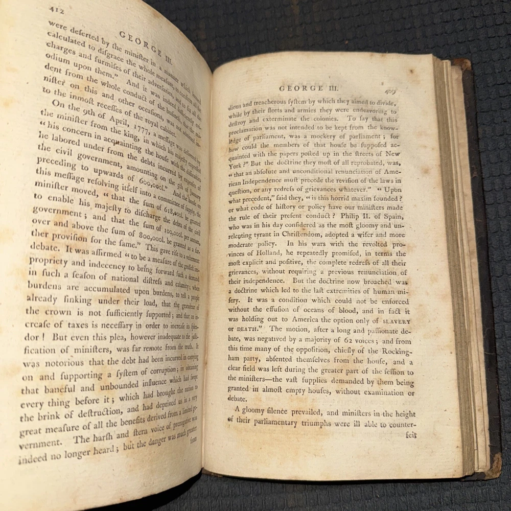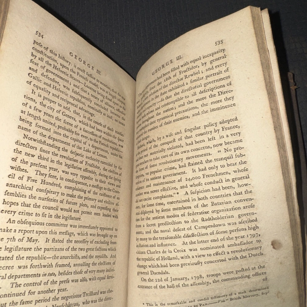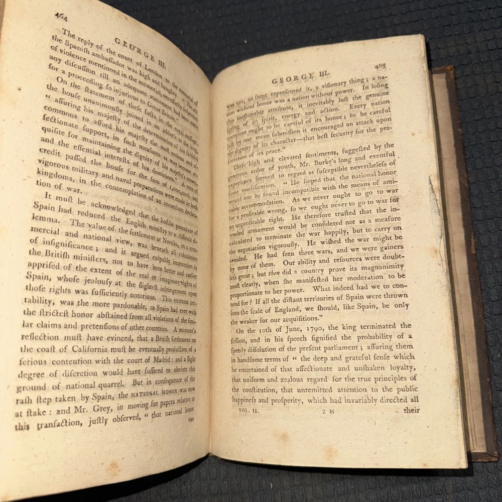 I combine shipping and post new items daily! Please look at all pictures and ask any questions before purchasing. I do my best to show and describe all flaws, so you know exactly what you are buying. Follow my store for many more great books and deals. Thanks for looking and supporting my business! Inventory#420 Description: Memoirs of The Reign of George iii by W. Belsham Complete in 3 Volumes 1802. Worn leather covers and cracked leather with some loss on spines. Spines have mislabeled numbering. Vol 1 marked 3, tight covers with 496 pages. Last page has torn bottom corner. vol 2 marked 4, tight covers and 567 pages. and vol 3 marked 5, tight covers and 558 pages. Pages have staining and foxing present with old book smell. 8 1/4x5 1/4x 1 1/2”.