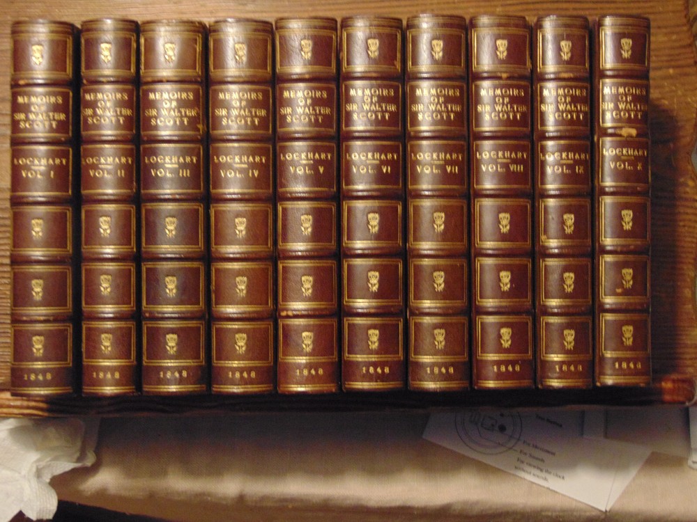Memoirs of the Life of Sir Walter Scott J. G. Lockhart Published by Robert Cadell; Houlston & Stoneman, Edinburgh; London, 1848 A complete set of the biography of Sir Walter Scott, written by J. G. Lockhart, with frontispieces and a title vignette page to each volume. Bound in half-morocco on marbled boards.?Illustrated bookplate for Herbert Fitzroy Eaton to front pastedown of each volume.Illustrations include a frontispiece and a facsimile title page from the first editions to each volume. Vol. VI has a folding plate containing the facsimile of a page from the original script of Ivanhoe. This work describes the life and legacy of Sir Walter Scott, with details of his experiences alongside letters that he wrote himself. It was originally published in seven volumes between 1837 and 1838.?John Gibson Lockhart (1794-1854) was a Scottish writer and editor who is best known for his biography about Sir Walter Scott.?Collated, complete. Bound in half-crushed morocco with marbled boards. Externally, generally smart, with some marks to boards and a bit of edge wear to extremities. Bibliographic Details Title: Memoirs of the Life of Sir Walter Scott Publisher: Robert Cadell; Houlston & Stoneman, Edinburgh; London Publication Date: 1848 Binding: Leather 3/4 Illustrator: Various Condition: Very Good + Book Type: book FREE US Shipping! Happy Bidding!!