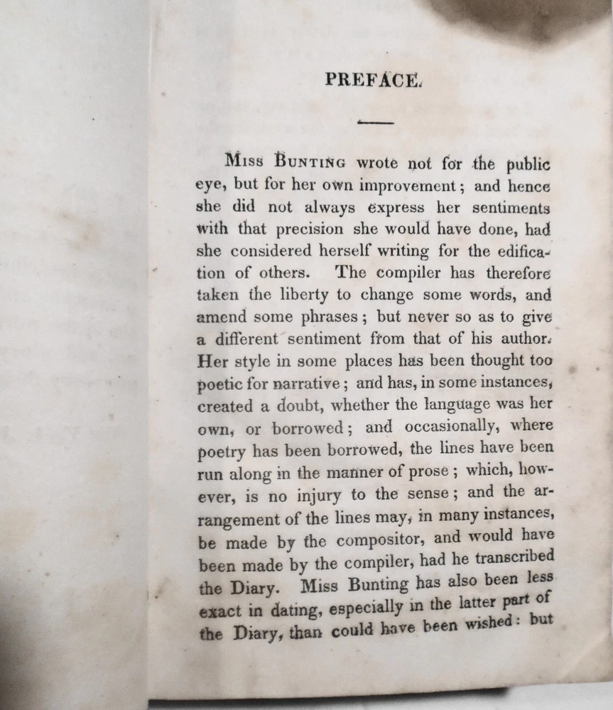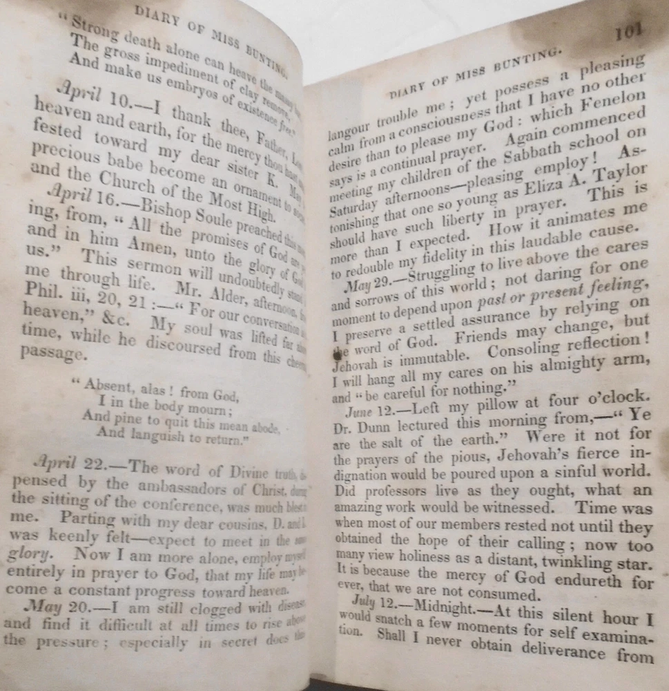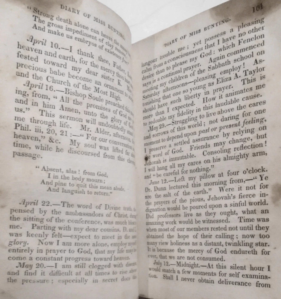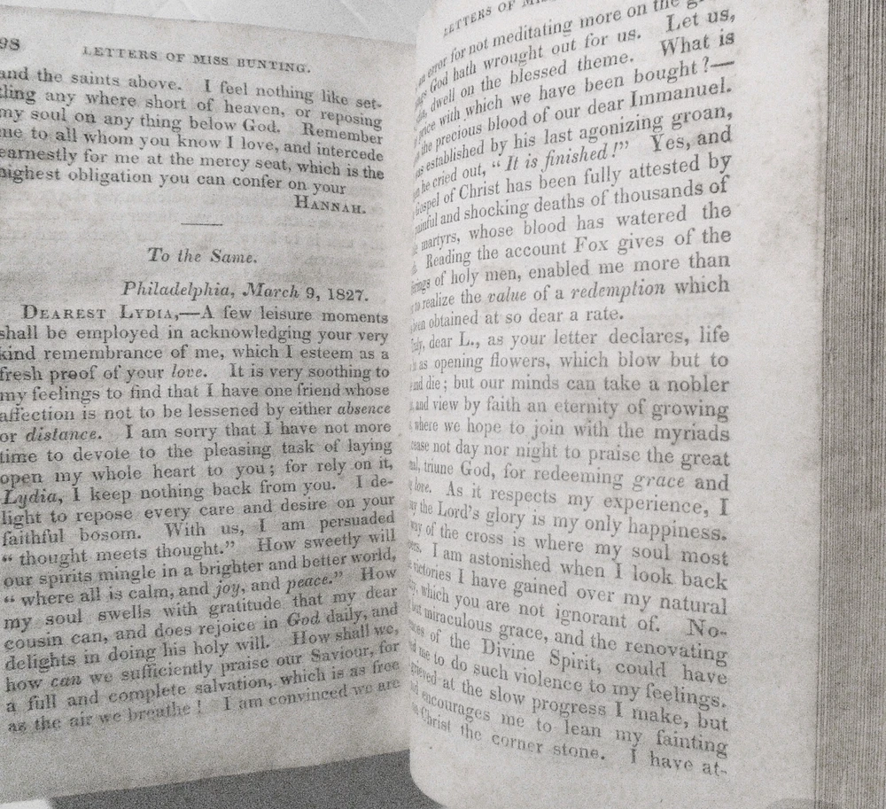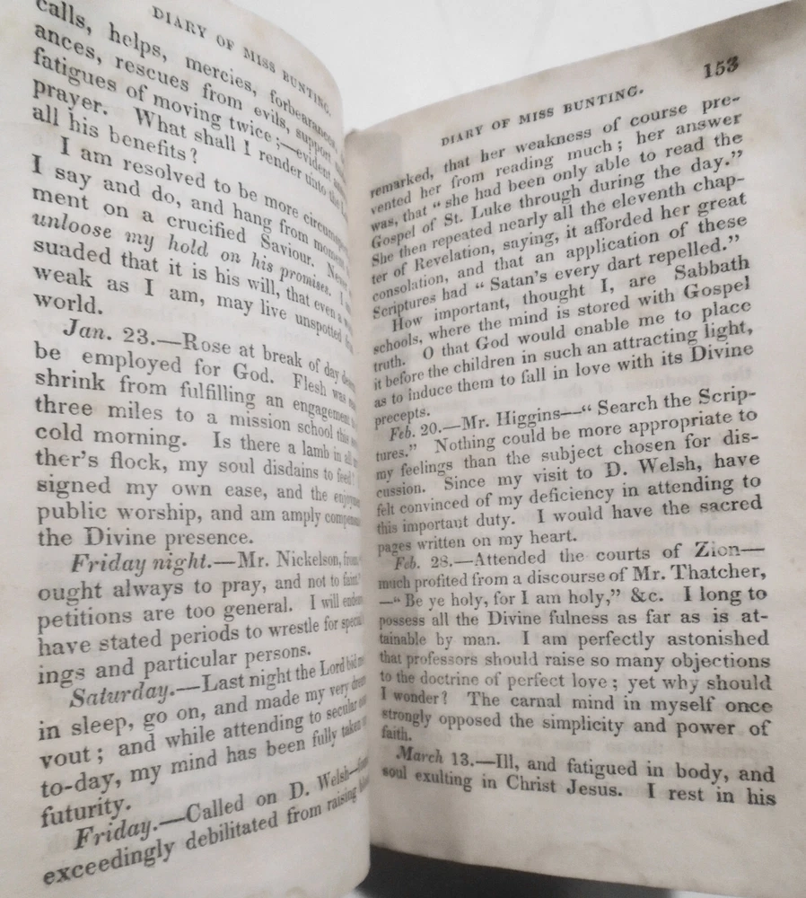 Memoir, diary and letters of Miss Hannah Syng Bunting, of Philadelphia, who departed this life May 25, 1832, in the thirty-first year of her age - by Reverend Timothy Merritt. Publisher: B. Waugh and T. Mason, NY, 1833. 2 volumes bound in one. EXTREMELY RARE 1833 first edition. Not in OCLC, which only records editions from 1837 on.