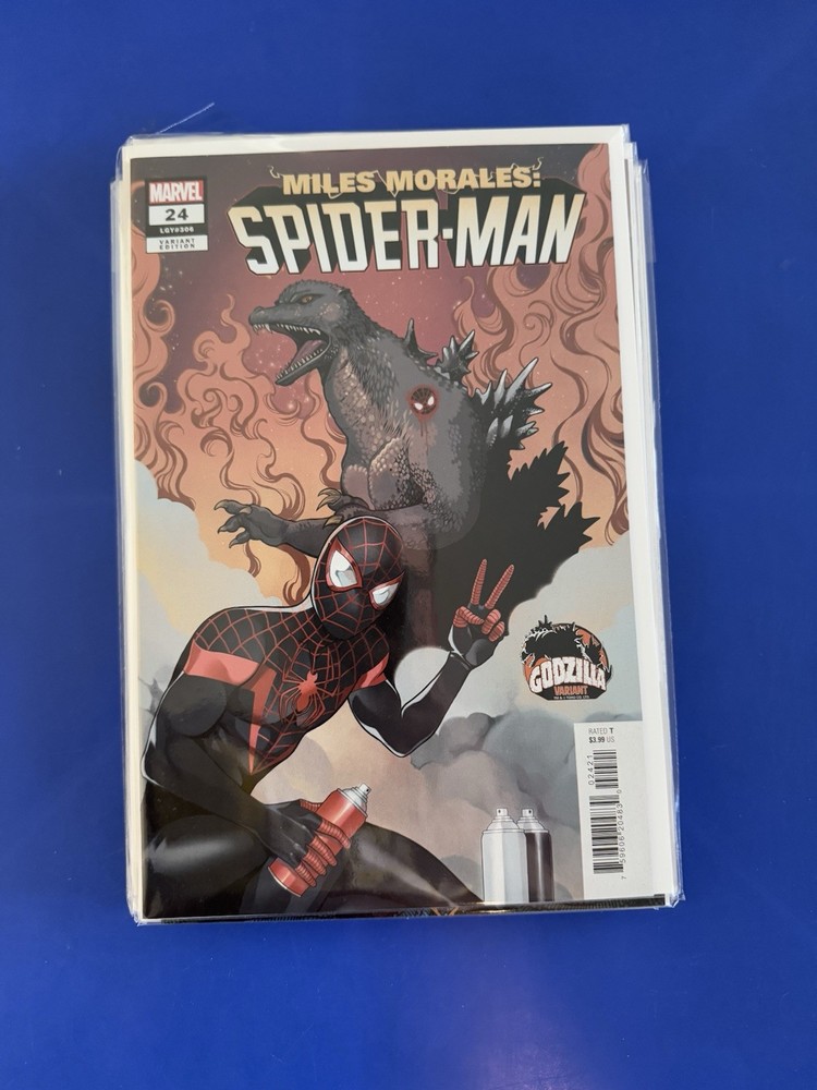 Miles Morales: Spider-Man #24 1st Print Godzilla Variant Marvel Comic 2024 NM+ PLEASE SEE PHOTOS FOR BEST DESCRIPTION Buy with CONFIDENCE! EACH BOOK BAGGED AND BOARDED AND packaged with complete care.. Shipped with USPS MEDIA MAIL YES! TO COMBINED SHIPPING TO SAVE YOU SOME LOOT; I CAN SAFELY SHIP UP TO THREE CGC BOOKS IN A USPS MEDIUM FLAT RATE BOX. PLEASE MESSAGE DIRECTLY FOR COST! IG TOTALLYDADICALCOMICS