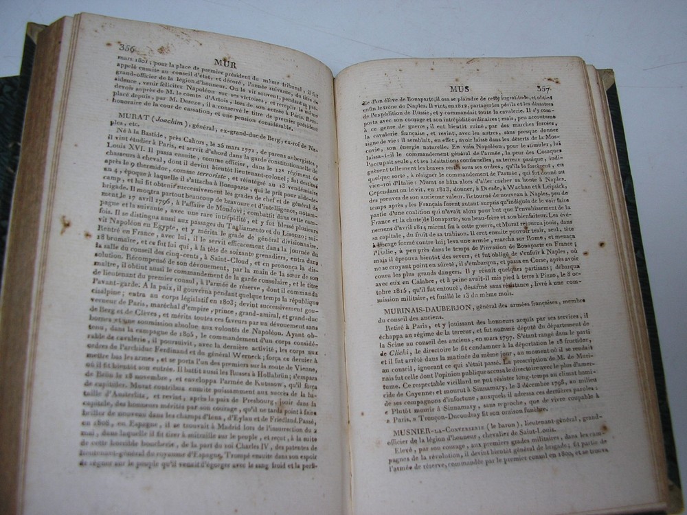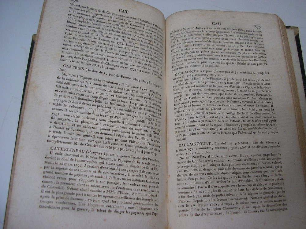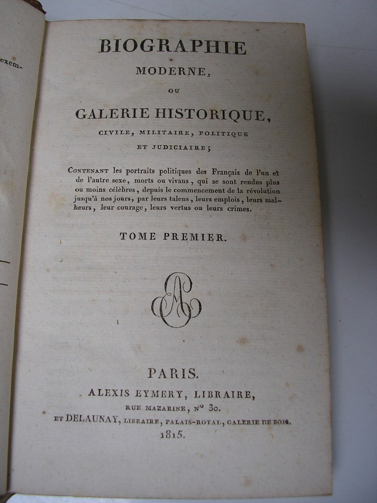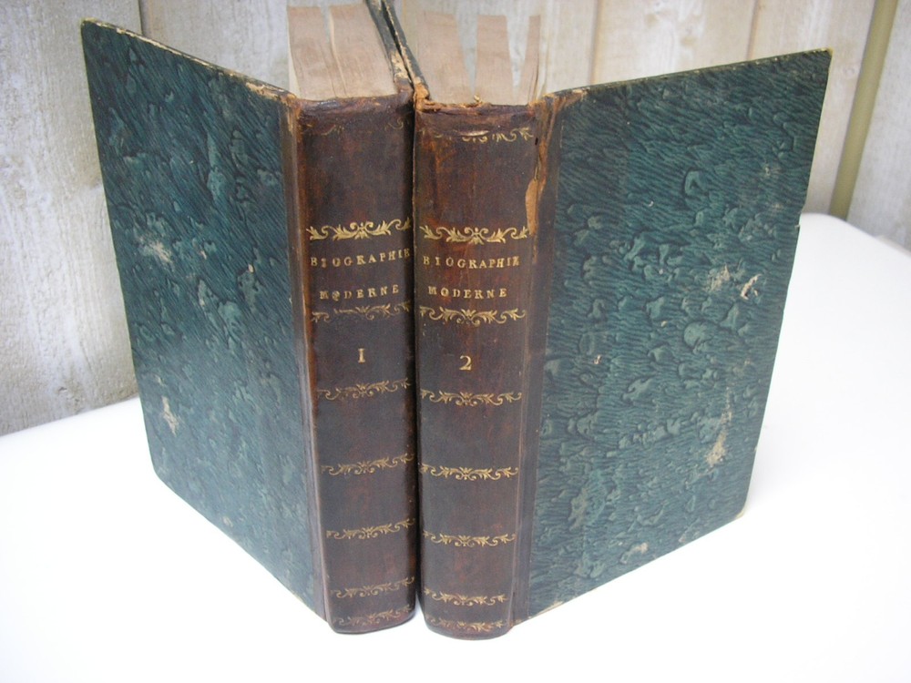 MODERN BIOGRAPHY Or civil, military, political and judicial historical gallery; containing the political portraits of French people of both sexes, dead or alive, who have become more or less famous since the beginning of the revolution to the present day, by their talents, their jobs, their misfortunes, their courage, their virtues or their crimes Paris, Eymery, 1815 Half sheepskin (22x14cm), 521 and 554 pages. Binding a little rubbed, some foxing. 116 MODERN BIOGRAPHY Or civil, military, political and judicial historical gallery; containing the political portraits of French people of both sexes, dead or alive, who have become more or less famous since the beginning of the revolution to the present day, by their talents, their jobs, their misfortunes, their courage, their virtues or their crimes Paris, Eymery, 1815 Half sheepskin (22x14cm), 521 and 554 pages. Binding a little rubbed, some foxing. Â 116