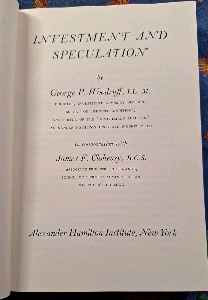 Delve into the world of entrepreneurship and finance with the 1958 edition of "Investment And Speculation" from the Alexander Hamilton Institute. Authored by George Woodruff, this leather-bound piece is a testament to timeless business wisdom and is sure to be a valuable addition to any collector or enthusiast's library. Rich in content and history, this book offers insights into the mind of one of America's most revered financial figures. With its focus on biography and autobiography, it provides an intimate look at the life and work of Alexander Hamilton, making it not only an educational tool but also a collector's gem for those fascinated by the intricacies of business and history.