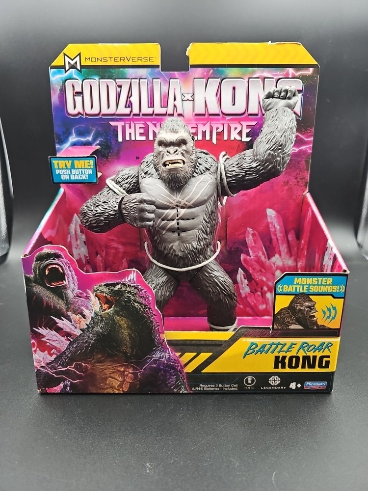 The MonsterVerse GODZILLA x KONG the New Empire (2024) BATTLE ROAR KONG 6" Figure is a licensed reproduction action figure from the King Kong franchise. This colorful plastic figure stands at 6 inches tall and features the character Kong from the movie "The New Empire." It includes a unique Battle Roar feature and comes in its original packaging from Playmates Toys. The figure is part of the Monsterverse series and is designed for children aged 3-4 years old, making it a must-have collectible for fans of the Godzilla and King Kong films.