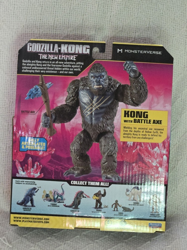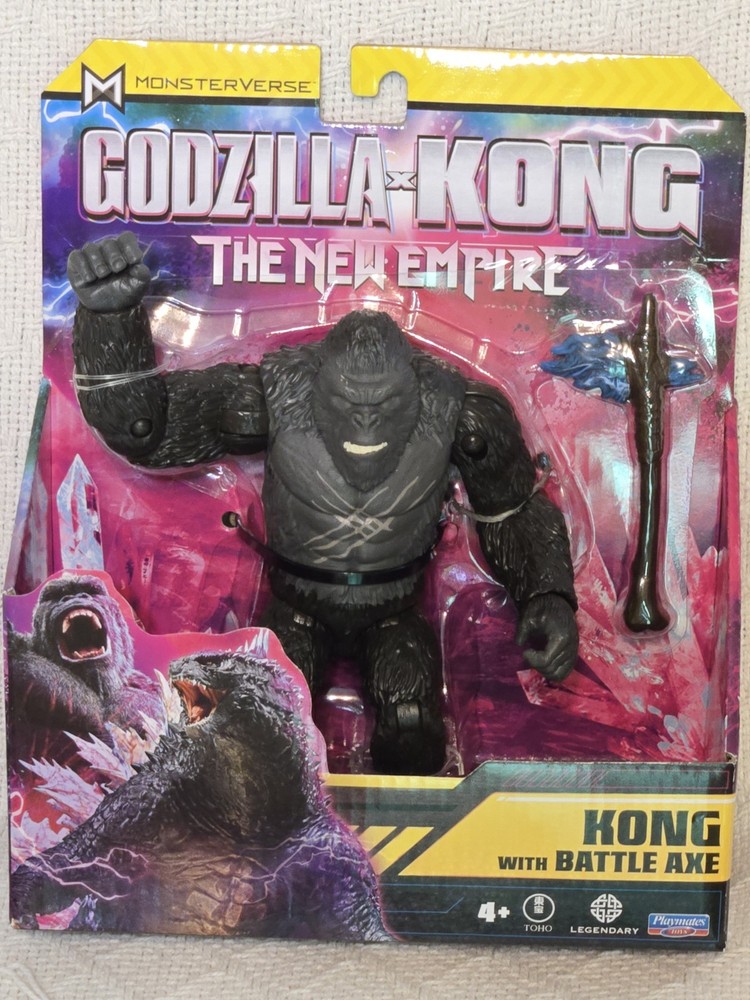 The product is a new action figure from the Monsterverse Godzilla x Kong The New Empire, featuring Kong with the B.E.A.S.T. Glove. This fully articulated and poseable figure is based on the character from the movie "Godzilla x Kong The New Empire" and comes factory sealed in new 2024 movie themed packaging. The item is 8 inches tall and 6 inches wide, and is made of ABS plastic and plastic materials. With its original design and colorful multicolor paint, this action figure appeals to fans of the Godzilla x Kong franchise, bringing the Titanus Kong character to life for ages 4 and up.