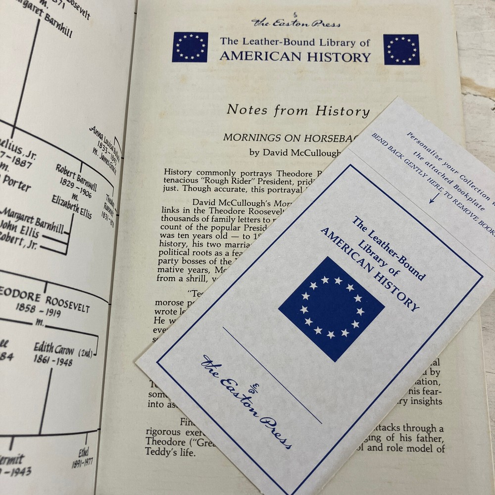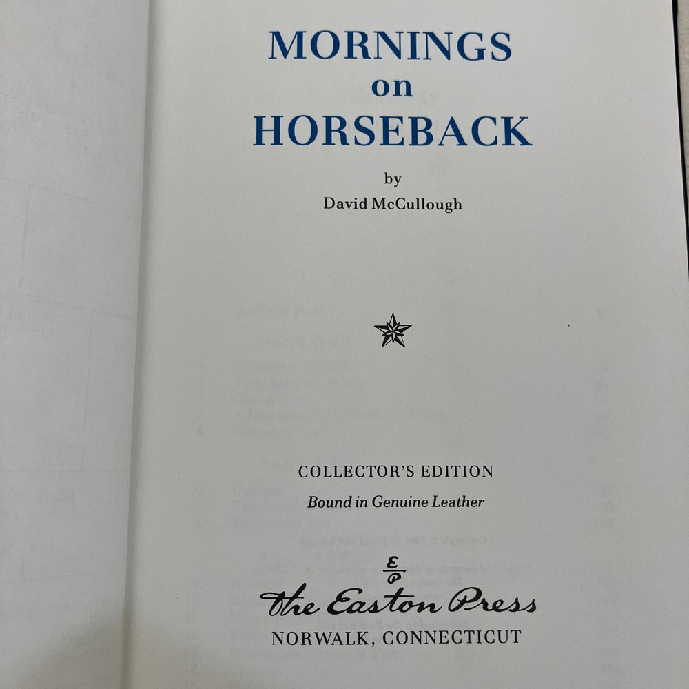 Mornings on Horseback by David McCullough Easton Press American History 1988 HC This is a used book with general edge and shelf wear, some fading to the covers and spotting on gilded page edges. Binding is intact, no writing, stains, or unusual smells. See pictures for overview of condition. We are BrightLight Books. We have sold tens of thousands of items online since 1998. Money Back Guaranteed! For Local Pickup in our Fern Park, FL store, please message us! 40-3-1 (5010728) 11/14/2024 AH