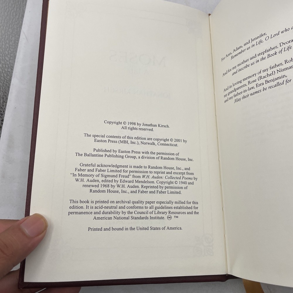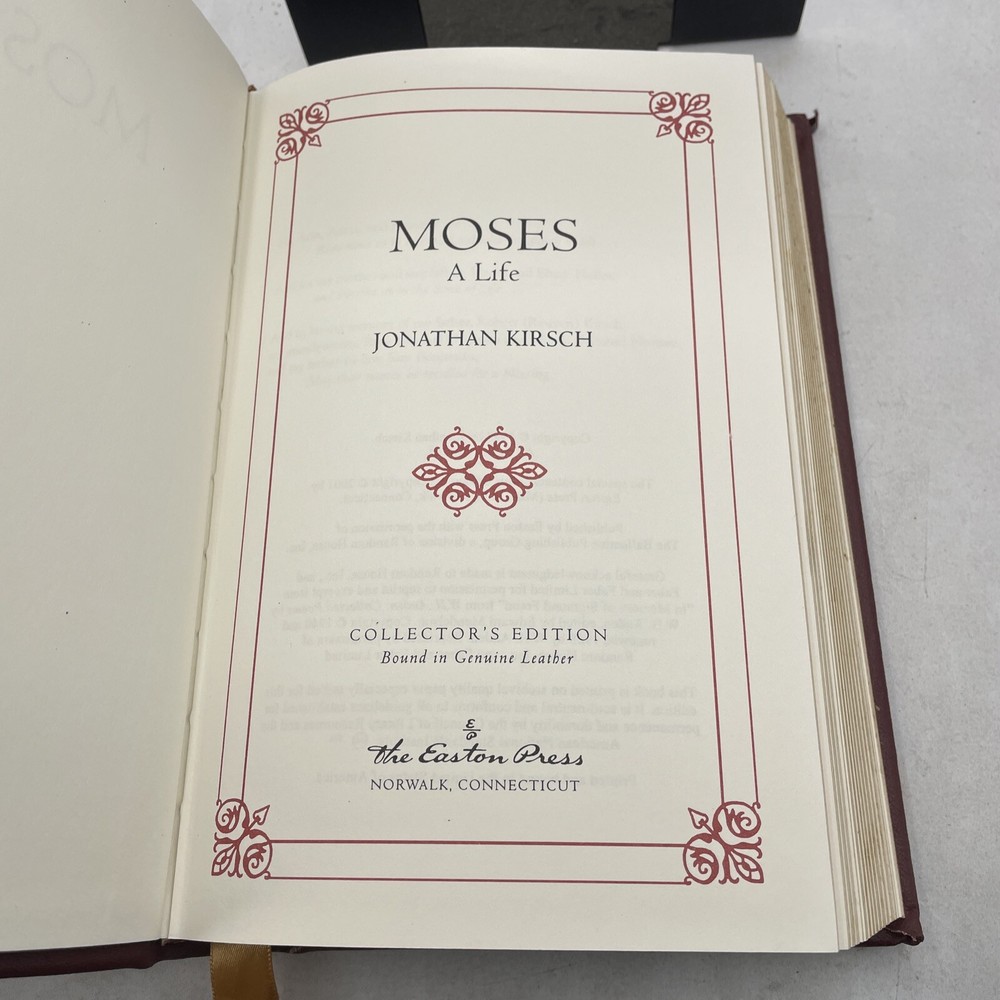 This collector's edition of "Moses: A Life" by Jonathan Kirsch is a rare find for any book enthusiast. The genuine leather binding adds a touch of luxury to this original copy published by Easton Press. The book explores the topic of religion, specifically the subject of religion and spirituality, making it a thought-provoking read for those interested in the subject. Written in English, this book is perfect for collectors and readers alike who appreciate the beauty and rarity of antique literature.