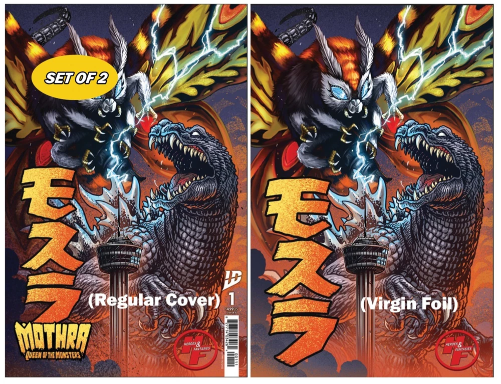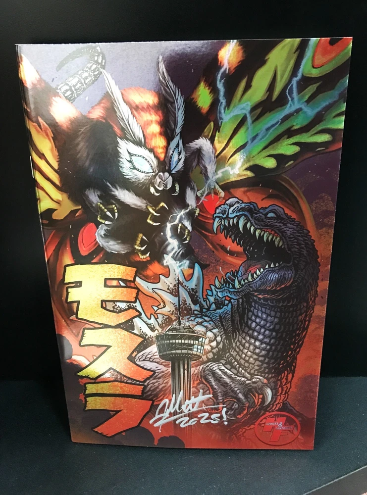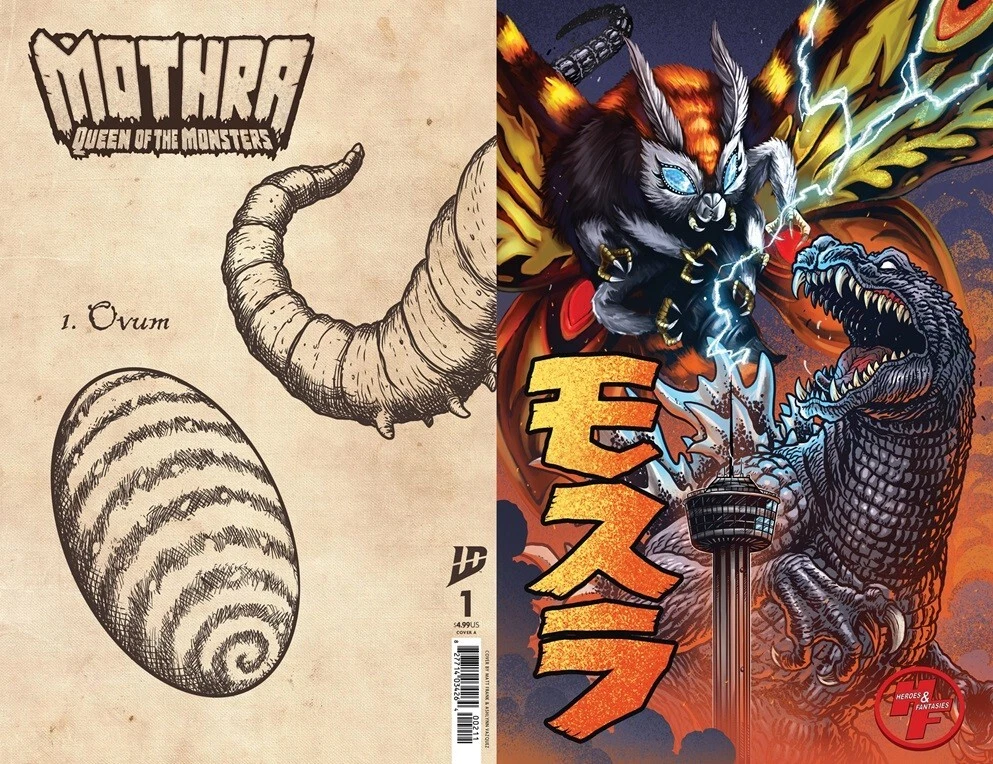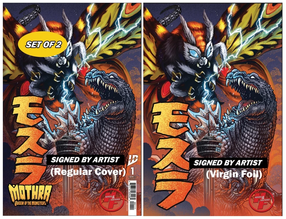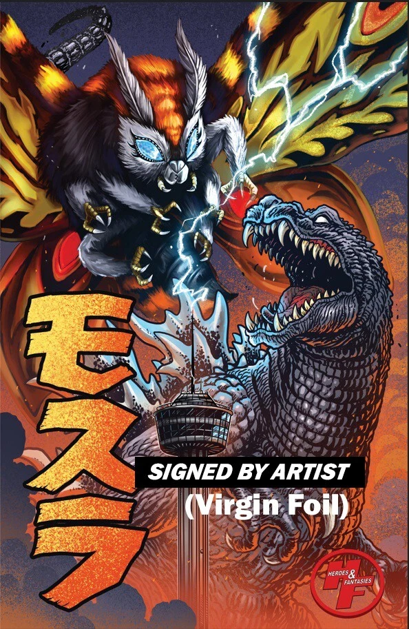 Pre order your Heroes & Fantasies Matt Frank exclusive cover of Mothra Queen of the Monsters #1 -Regular Cover -- $12.00 -Virgin Foil Cover --$30.00 - Set of both Regular + Foil Cover --$42 --- -Regular Cover, Signed by Artist Matt Frank --$22.00 -Virgin Foil Cover, Signed by Artist Matt Frank --$40.00 - Set of both Regular + Foil Cover, both signed by Artist Matt Frank --$62.00 Signed Variants come complete with a certificate of authenticity and will not be shipped out until the 17th of March, after our Store signing event on the 15th. Issues #1-5 have a connecting cover on the back and will also be available for preorder on our website. Expected release is March 5, 2025, with local pickup available. Cover artists: Matt "The Kaiju King" Frank & Ashlynn Vazquez Heroes & Fantasies- The Largest Comic Shop in Texas