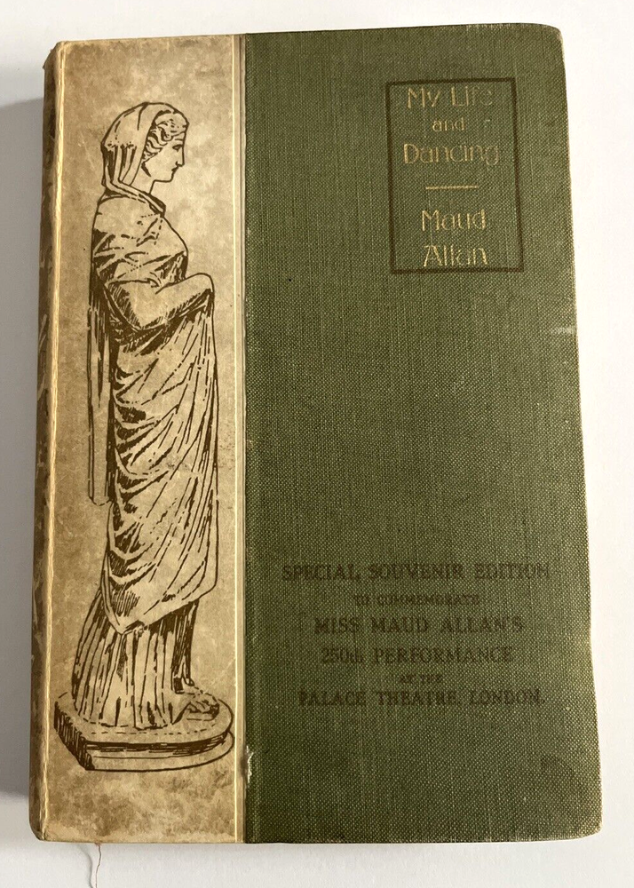 RARE PIECE OF THEATRE HISTORY! My Life and Dancing by Maud Allan - SIGNED! Special Souvenir Edition celebrating 250 consecutive performances at London’s Palace Theatre. Maud Allan's most significant career achievement came when she performed The Vision of Salome in London in 1908 where the depiction of biblical characters on stage was illegal. She began this "conquest of London" by performing a two-week residency at the Palace Theatre where her performance ended with The Vision of Salome . These performances made her an overnight sensation in the region and pushed her into the upper echelon of society in England. She continued performing in London for 18 months and performed The Vision of Salome 250 times .