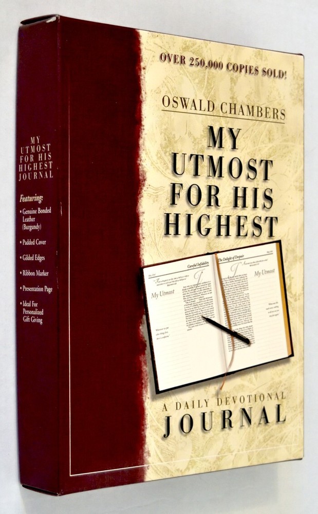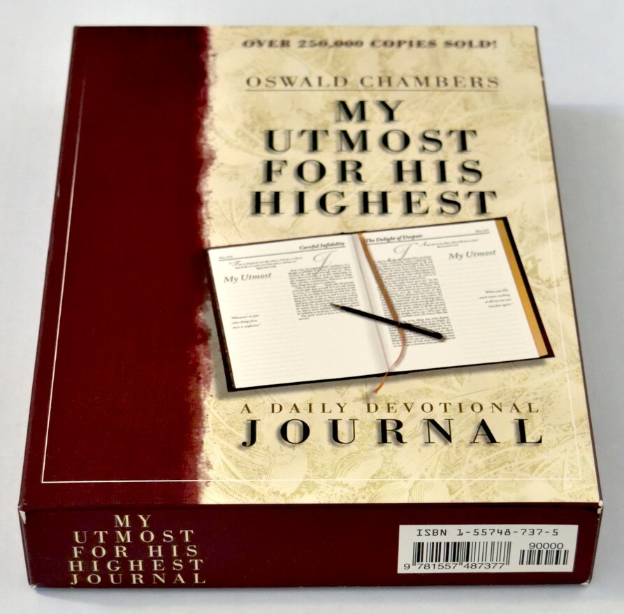 This daily devotional journal has never been used and has no marking whatsoever. Presentation page still blank. Place-keeping ribbon present and in fine shape. There are a couple of vertical scratches on the back; they look as if they could have happened during manufacture. Please see photos. Original box intact and sturdy. It does have some light wear. Pages bright, clean, odor-free. Each page has a date, not including a year, a short reading and space to write. The readings have been selected from a variety of sources. Genuine bonded leather, gilded edges, padded cover. ISBN 1557487375. This journal and box will be packaged securely so it arrives undamaged! We ship only via the U.S. Postal Service. Standard, economy shipping will go by Media Mail to the lower 48 states. Expedited shipping will go by Priority Mail. Please contct us if you have any questions.