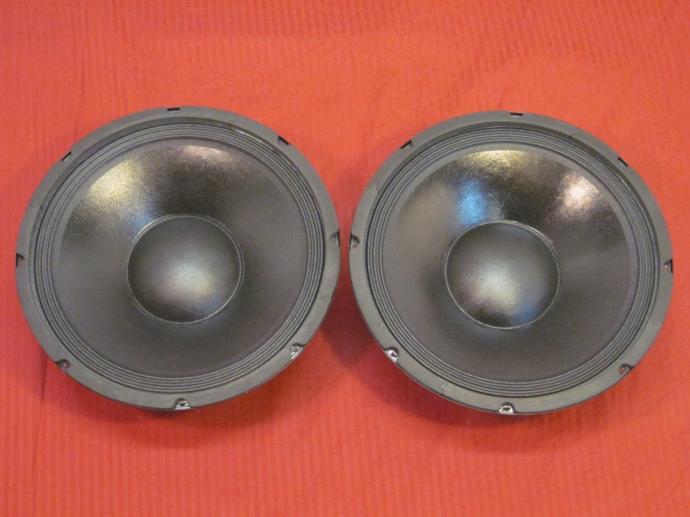 NEW 12" Woofer Speakers.Guitar.Pro Audio.8 ohm.DJ.PAIR This listing is for (2) new 12 inch 8ohm PA woofers rated at 175 watts RMS, and 350 peak each. I would recommend them for guitar speaker replacements, or bass PA speakers. These woofers will go down to 38hz, so they will handle a respectable amount of bass response. These woofers are extremely efficient at 97db, so you do not need a huge amplifier to get great sound out of them. I used on of these speakers for a replacement in a Electro voice SXA100+ and it was a direct replacement, and I was very happy with its performance. These woofers measure 11-3/4's diagonally from hole to hole, which is standard for most 12" woofers. Customers have had good results using this as a replacement with little to no modifications in Yamaha, Behringer, Pioneer, Fisher/consule, Sony, Carvin, JBL, Klipsch, Sansui, Orange PPC 4X12, Peavey 112PS, Fender Bassman 100Bic Venturi Formula 6 and more (double check your dimensions before ordering) Please note this listing is for (2) woofers. For more info on this woofer, please see below. This woofer is brand new in box. Price includes shipping to the lower 48 states. Ideal for sound reinforcement, and monitors Optimized for vented enclosures General Specifications: Cutout: 10.87" Total Frame Diameter: 12.25" Mounting Depth: 5.04" Nominal Diameter: 12 inch Rated Impedance: 8 ohms Operating Bandwidth: 38Hz ~ 2.5KHz Power Handling Capacity: 175W RMS (each speaker) Sensitivity (1W/M): 97 dB Voice Coil Diameter: 2.5 inch Thiele-Small Parameters: Resonance Frequency Fs: 38 Hz DC Resistance Re: 7.2 ohm Mechanical Q Factor Qms: 2.8 Electrical Q Factor Qes: 0.385 Total Q Factor Qts: 0.34 Equivalent Cas air load Vas: 108.0 liters Coil Inductance Le: 0.923 mH Efficiency Bandwidth Product EBP 98.70 Voice Coil Over Hang X-max 3.75mm Physical Information: tT Cutout: 10.87" Total Frame Diameter: 12.25" Mounting Depth: 5.04" Diagonal hole to hole: 11.75" Basket: Stamped Steel Magnet Type: 50 OZ Cone Material: Non-pressed paper Surround: Cloth Dust Cap: Paper Damper: Cloth Any questions, please ask me. Shipping is FREE to the US lower 48 states for (2) speakers. Thank You for bidding. 55-2952 I accept Pay Pal for payments. Please contact me if you can not pay through pay pal. Payment is due within 4 days of the auctions end by Ebay's Terms. I will only ship to your pay pal confirmed shipping address, unless you have contacted me before hand and I have agreed to do otherwise. Typically items are shipped within a day after the payment has been cleared unless otherwise noted. I include shipping insurance in with the cost of shipping (orders over $50 in value) and typically use Fedex. Please contact me for a shipping quote to your location if you are not in the US. I take pride in packaging my items, and use proper packaging and confidence that it is properly shipped. Payment is due within 4 days of the auction's end. This is Ebay's payment policy. No Returns are accepted for items delivered as Described. If you receive the wrong item, or an item that is damaged, I will make it right with a replacement or return. All items sold to California will be charged 8.75% to the sale price (not shipping). This is state law to collect sales tax in CA, and will not be charged to any other states. Items shipped internationally are marked as 'other/merchandise'. I take pride in my business. Thank YOU! I am an honest seller with over a 99% positive rating. I test all items before listing, and describe them to the best of my ability. I am a small seller, and i take pride in every item that I sell. It is my goal to build a reputable business and name for myself by giving customers quality products and service. If you have a particular item that you are looking for, please contact me and i may be able to locate it for you. I do appreciate your business, and look forward to shipping your item. For any questions or concerns feel free to contact me. Thank You for bidding!