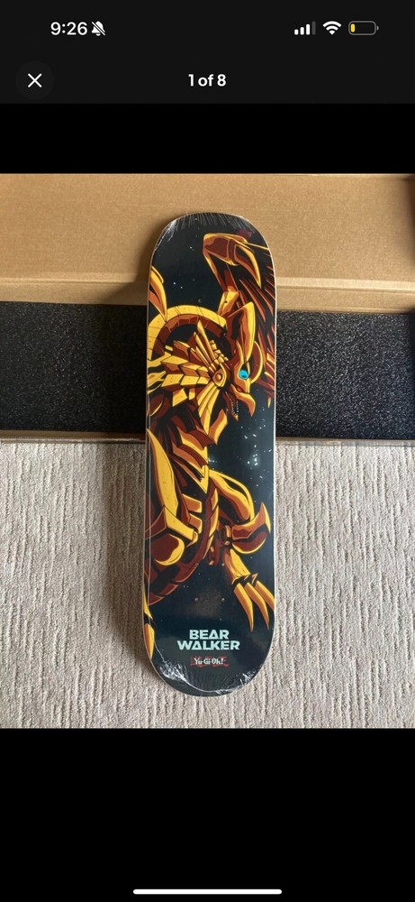 Introducing the limited edition Bear Walker X Yu-Gi-Oh The Winged Dragon of RA Skateboard, a rare find with a unique design for avid skateboard collectors. This skateboard features the iconic character from the Yu-Gi-Oh theme and is perfect for fans of the series. The deck is made from high-quality materials and is built to last, ensuring that you can enjoy this rare skateboard for years to come. The Bear Walker X Yu-Gi-Oh Skateboard is a must-have for any avid skateboard collector or Yu-Gi-Oh fan. Its unique design and limited availability make it a rare find that is sure to impress. Whether you're using it to skate around town or displaying it in your collection, this skateboard is sure to make a statement.