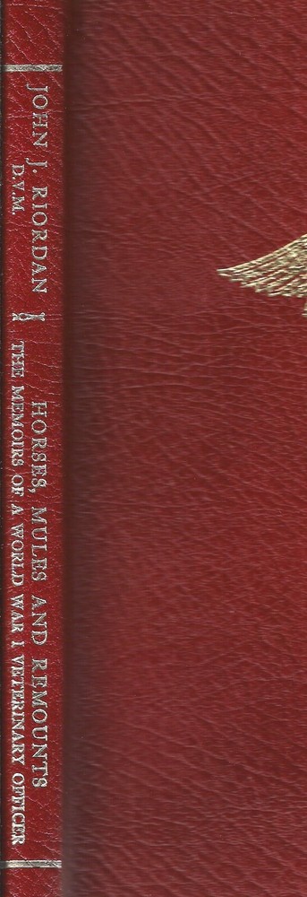 Richard J. Park, Bookseller presents ... Horses, Mules & Remounts. Memoirs of a World War I Veterinary Officer ISBN: 0985544228 Author: Riordan, John J. Publisher: Privately Printed Release Date: 1983 Seller Category: -- Qty Available: 1 Condition: New Sku: OJ1-002 Notes: NEW condition; Red cloth Hardcover with gold titles. The First Edition was limited to 350 copies, of which the first 53 comprise the Deluxe Edition, & are bound in Red leather and SIGNED and numbered by John F. Riordan, the Author's son. This is #1, and was from Mr. Riordan's own personal estate. 115 pages, llustrations. Don't forget to check out other great deals in our eBay Store!!