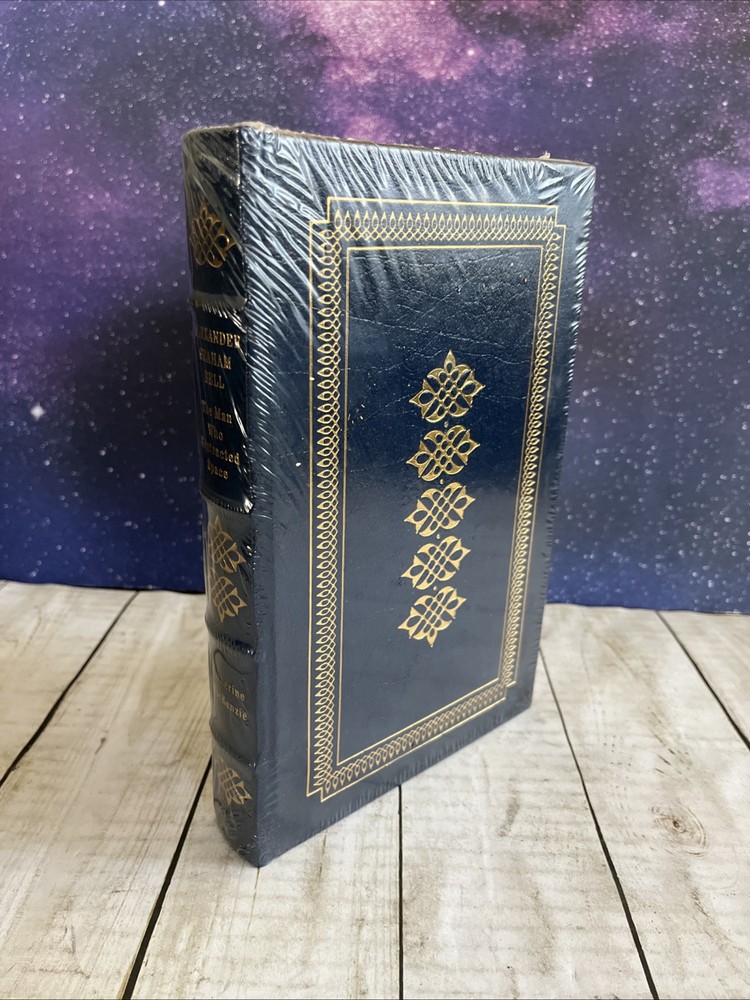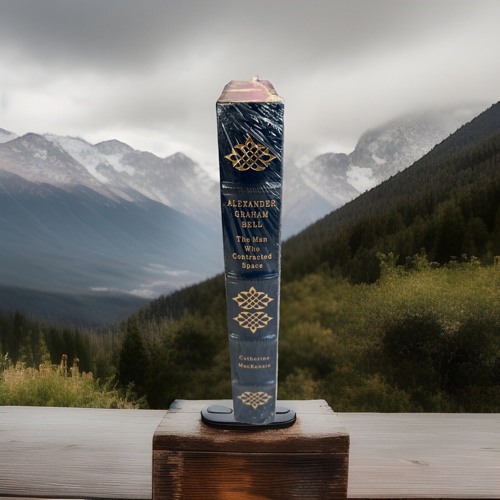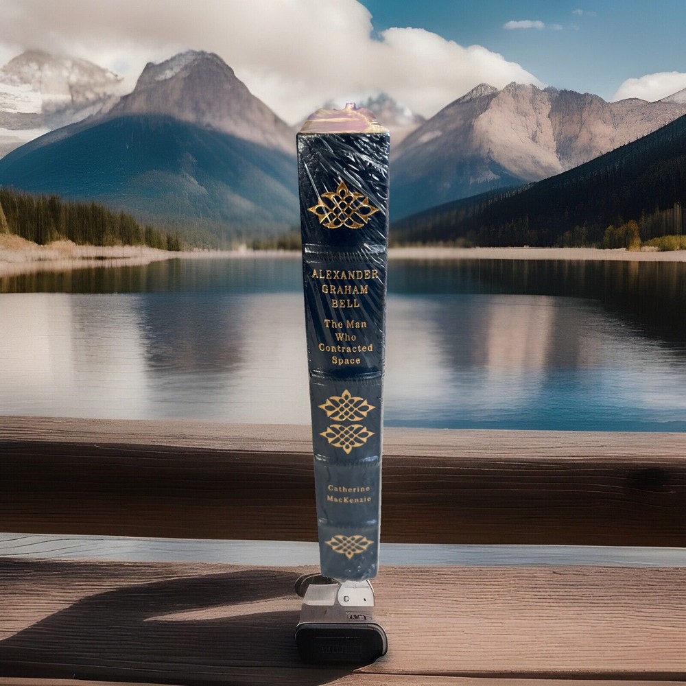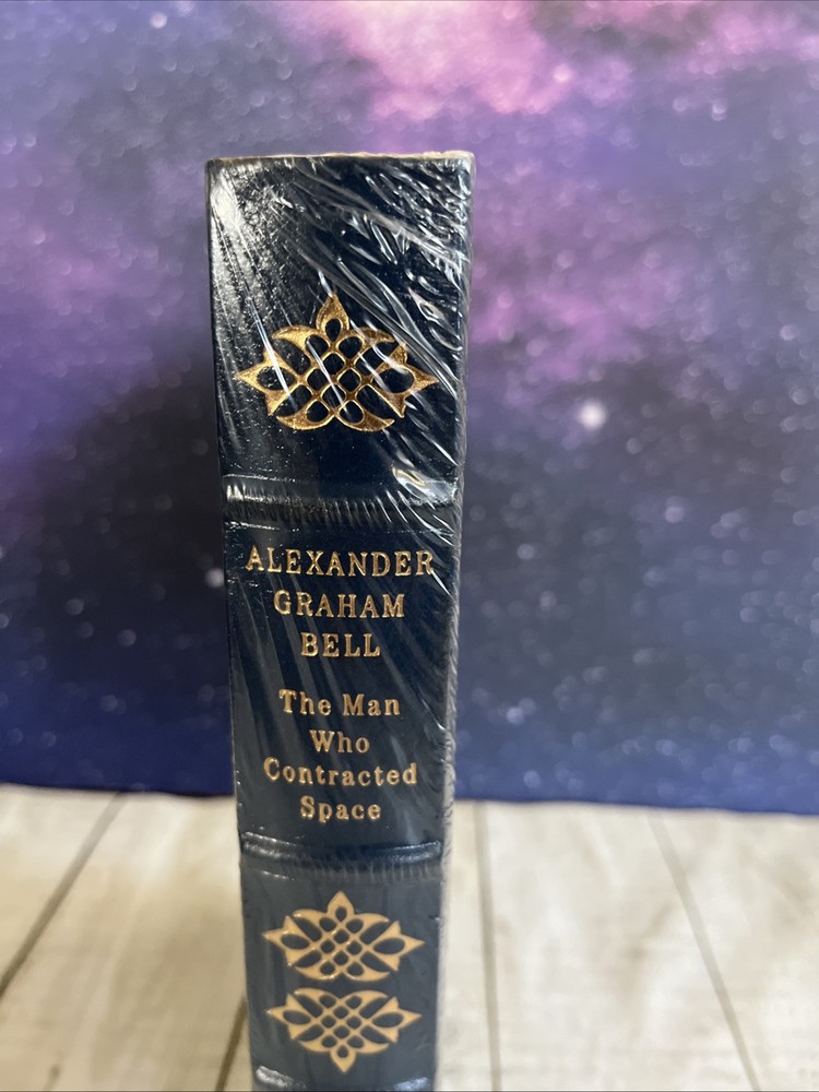 The product is a collector's edition book titled "ALEXANDER GRAHAM BELL: THE MAN WHO CONTRACTED SPACE" by Catherine McKenzie. It is written in English and published by Easton Press, featuring a leather binding. The book is a biography and autobiography about Alexander Graham Bell, focusing on his life and achievements. This original edition is a single unit quantity and does not mention being signed or personalized. New sealed with original plastic wrapper