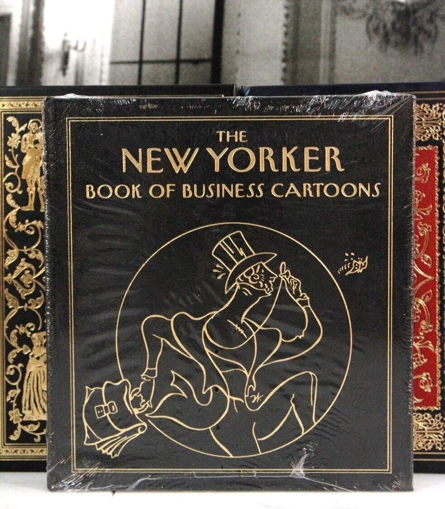 ***Copy of photos, personal formats, graphics, or text is prohibited . Ebay may drop listings with infractions. I review content regularly. Large Art or Coffee Table Books New Yorker Business Cartoons Author: Illustrations by Description: Condition : Sealed in original plastic. With original shipping box. This Fine Leather Book Features: Top grade, gold embossed/ornamented leather Gilded page ends to protect against dust and moisture Decorative end papers Acid neutral archival paper to last generations without discoloring or degrading