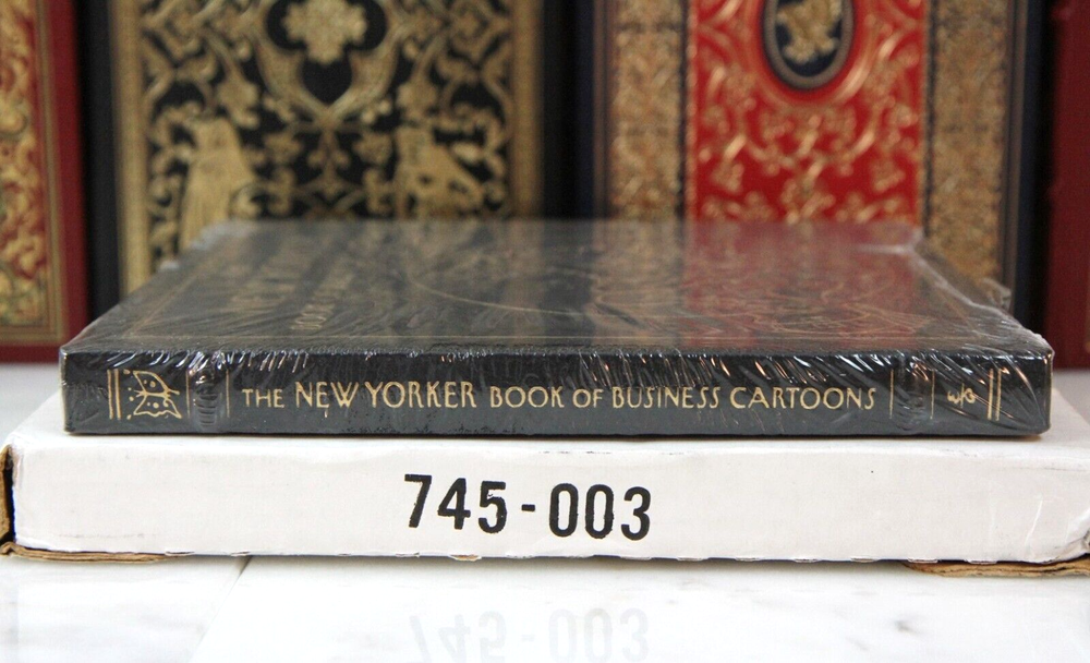 This Easton Press edition of *New Yorker Business Cartoons* is a stunning collector's piece! Still sealed in its original plastic with the shipping box, it's in pristine condition. The premium leather cover, gold embossing, and gilded edges add elegance, while acid-free paper ensures longevity. Perfect for fans of classic New Yorker wit—a true treasure for any bookshelf or coffee table.