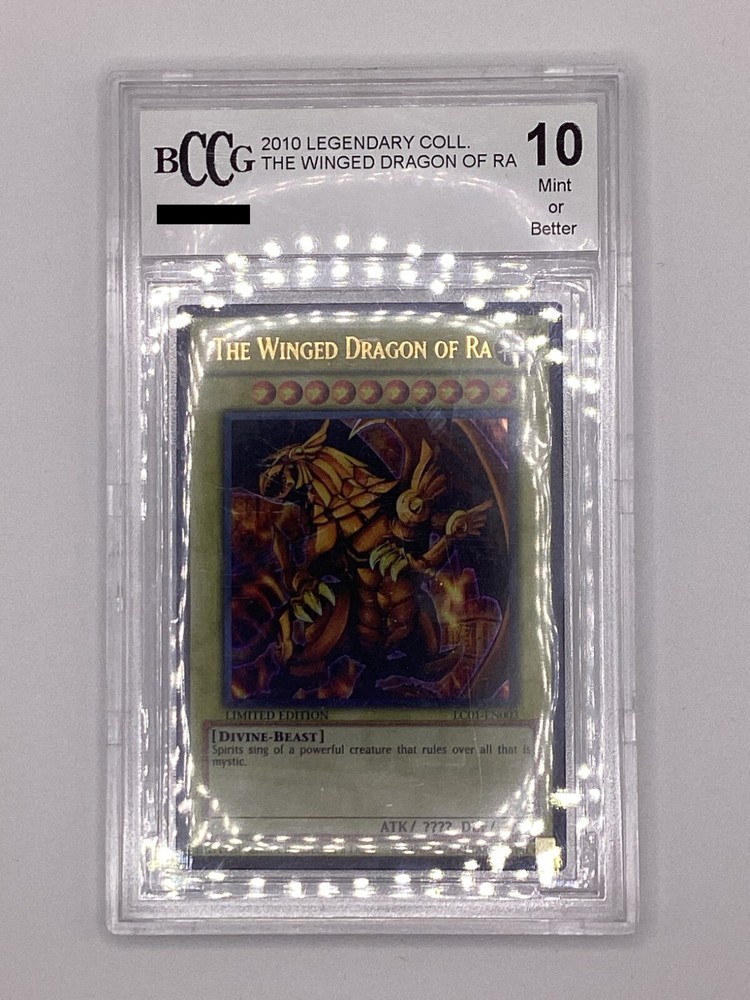 This item is a near mint Yu-Gi-Oh The Winged Dragon of Ra LC01-EN003 Limited Edition BCCG Graded 10 copy. 4 copies available.